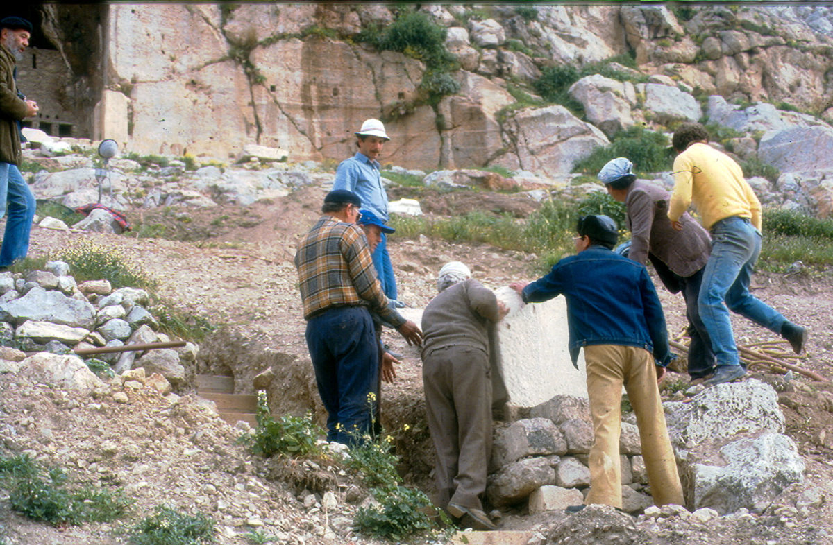 Η Επιτροπή Συντήρησης του Θεάτρου του Διονύσου συγκροτήθηκε το φθινόπωρο του 1984 επί Υπουργίας Μελίνας Μερκούρη, με αφορμή την αποκατάσταση του αναλημματικού τοίχου του κοίλου στην ανατολική πάροδο, τμήμα του οποίου είχε καταρρεύσει εξαιτίας του σεισμού του 1981. Πρόεδρος της Επιτροπής ήταν, αρχικά, ο αρχαιολόγος Δημήτρης Λαζαρίδης και, μετά την αποδημία του, ο Άγγελος Δεληβορριάς. Την ομάδα εργασίας, που είχε ήδη συγκροτηθεί από τον γενικό μελετητή και επιβλέποντα Γερμανό αρχιτέκτονα (σημ. 1) W. Wurster, στελέχωναν οι αρχαιολόγοι της Εφορείας, υπεύθυνοι για τη Νότια Κλιτύ, Κωνσταντίνος Τσάκος και Αλέξανδρος Μάντης, ο τοπογράφος-αρχιτέκτονας Κωνσταντίνος Καζαμιάκης, οι γλύπτες Λευτέρης Βαλάκας και Απόστολος Φανακίδης, καθώς και ένα υψηλής εξειδίκευσης προσωπικό μαρμαροτεχνιτών και συντηρητών της Εφορείας (σημ. 2).