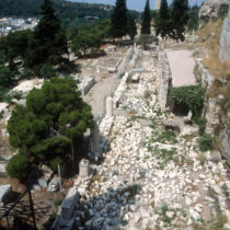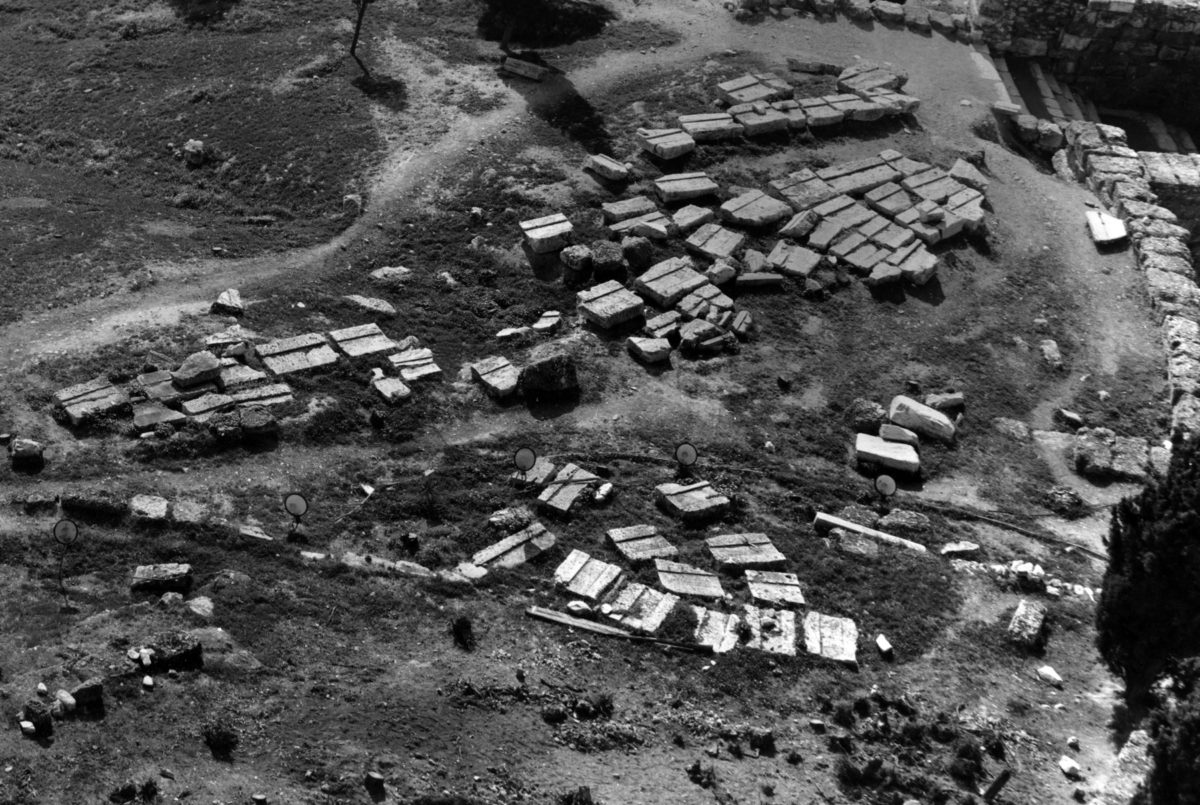 Στα έργα του ’60, με την αφαίρεση του οικισμού των Αναφιώτικων (εικ. 20) και τις νέες διευθετήσεις, προσδιορίστηκε και η νοτιανατολική γωνία του αρχαιολογικού χώρου της Νότιας Κλιτύος, ενώ δευτερογενώς προέκυψε, εκτός από την αποκάλυψη των υποθεμελιώσεων των κιόνων της νότιας πλευράς του «ωδείου του Περικλή» (εικ. 21) και ένα σημαντικό αρχαιολογικό έργο, οφειλόμενο στο μεγάλο πλήθος των αρχαίων μελών και θραυσμάτων που είχαν χρησιμοποιηθεί στην οικοδόμηση των κατεδαφισμένων σπιτιών.