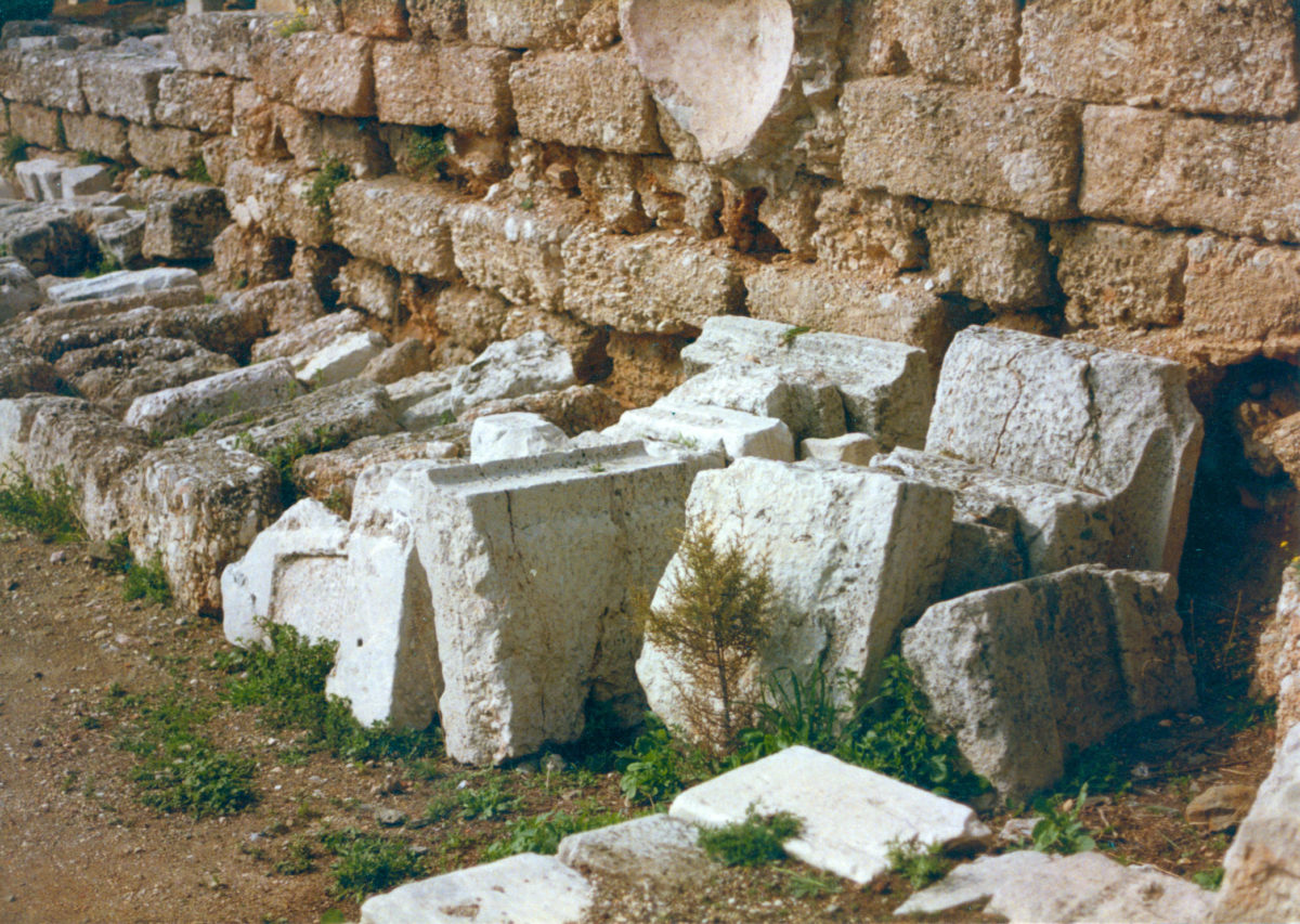 γ) στη συνέχεια, ψηλότερα δηλαδή από τα υπάρχοντα εδώλια, που ωστόσο, πρέπει να τονιστεί, δεν είναι καθόλου σίγουρο ότι βρέθηκαν στην ανασκαφή του 1862, έτσι ακριβώς αδιατάρακτα από την αρχαιότητα και,
