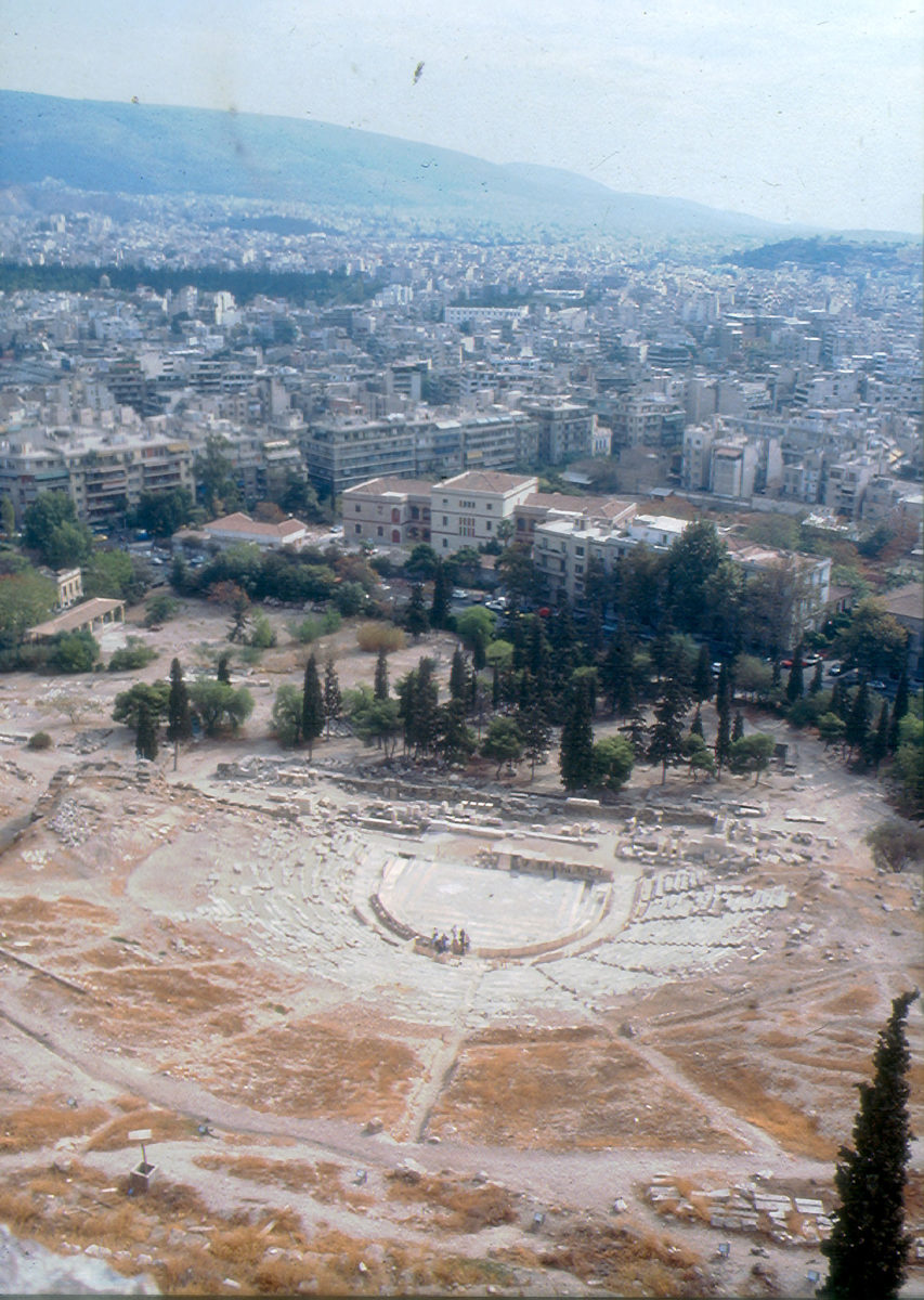 Ωστόσο, αν είχαν ολοκληρωθεί τα έργα προστασίας, συντήρησης και ανάδειξης, σύμφωνα με τις προδιαγραφές της Εφορείας, θα μπορούσε να πραγματοποιηθεί μια σύγχρονη παράσταση αρχαίου δράματος στο Θέατρο του Διονύσου, πράγμα που κατά τη γνώμη μου θα ήταν παγκοσμίως η σημαντικότερη εκδήλωση πολιτισμού ‒ χωρίς όμως τη χρησιμοποίηση των κατώτερων σειρών εδωλίων, αυτονόητα και των θρόνων, αφού αυτά θα αποτελούσαν μέρος του μνημείου-σκηνικού, αλλά και χωρίς πάγκους. Οι θεατές, ερχόμενοι είτε από την Πλάκα είτε από τη Διονυσίου Αρεοπαγίτου (σημ. 47), πατώντας στα χωμάτινα σκαλοπάτια θα κατευθύνονταν στις κερκίδες και θα παρακολουθούσαν την παράσταση, αποκλειστικά με φυσικό φωτισμό, καθισμένοι στο έδαφος της χοάνης του κοίλου.
