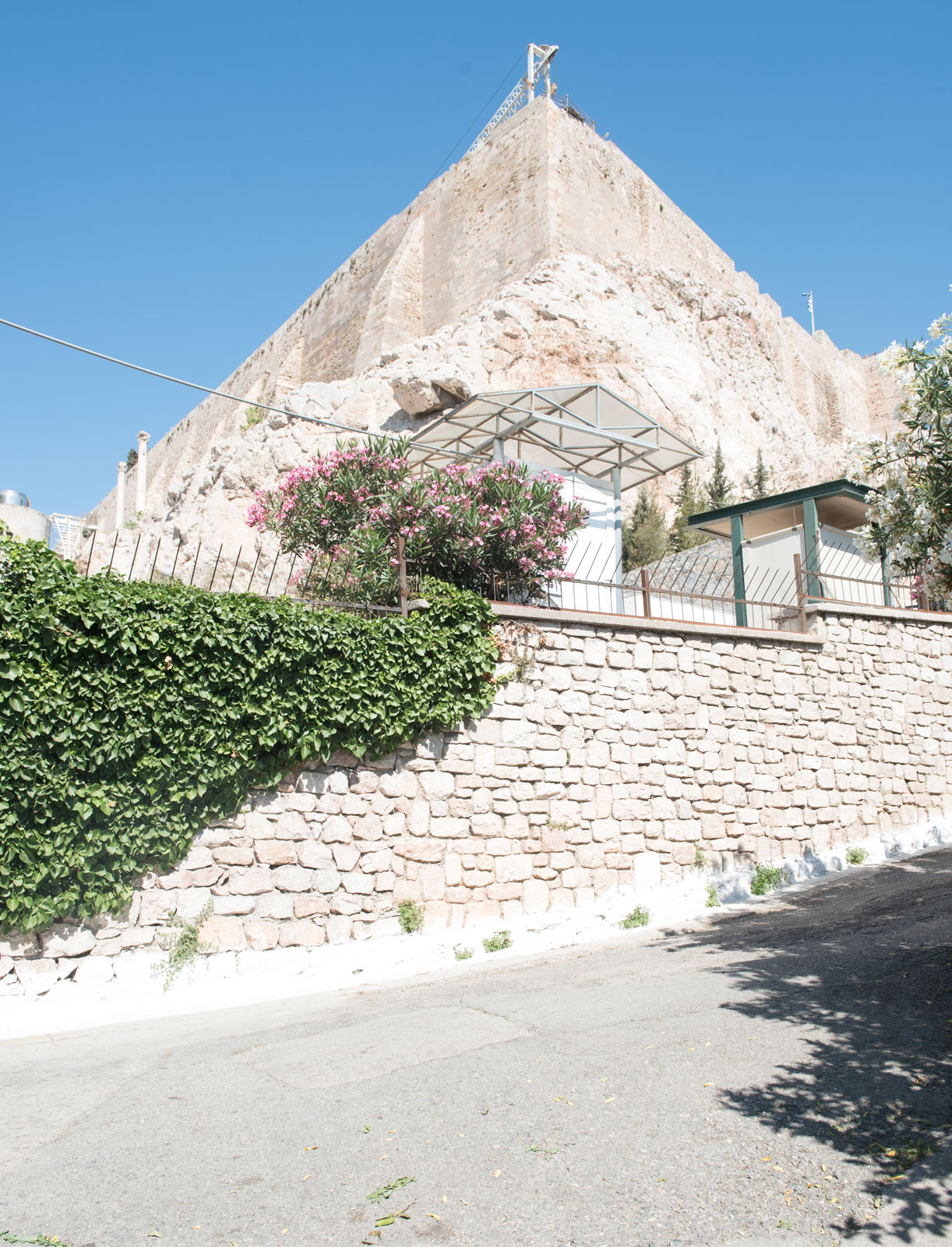Ο αρχαιολογικός χώρος της Ακρόπολης είναι σεβαστός στο σύνολό του. Δεν υπάρχει περιοχή λιγότερο σημαντική από άλλες, γιατί αλλιώς θα ήταν σαν να λείπει ένας κρίκος μιας βαριάς, μακριάς αλυσίδας, που θα σήμαινε την αχρήστευσή της. Απλές και στην πραγματικότητα αδάπανες διευθετήσεις στον αρχαιολογικό χώρο στις ανατολικές υπώρειες της Ακρόπολης θα διόρθωναν την καθόλου ευχάριστη εικόνα του υποσταθμού της ΔΕΗ που δεν είναι δύσκολο να μετακινηθεί σε οικοδομή του γειτνιάζοντα οικισμού ιδιοκτησίας του Δημοσίου (σημ. 45). Αντίστοιχα, οι βοηθητικοί χώροι του προσωπικού, όποιον λόγο και αν εξυπηρετούν, δεν ταιριάζουν με το σεβασμό που επιβάλλεται στο οικουμενικό μνημείο. Επιπλέον, όλες αυτές οι σύγχρονες κατασκευές απέχουν λίγα μόλις μέτρα από το Ανατολικό σπήλαιο, το ιερό δηλαδή της Αγλαύρου (σημ. 46). Στη λογική της ανάδειξης του αρχαιολογικού χώρου και της «απαλλαγής» του από σύγχρονες κατασκευές εντασσόταν, αλλά δεν πραγματοποιήθηκε ποτέ, και η αντικατάσταση του μαντρότοιχου, σήμερα με τα τεθλασμένα σίδερα, απέναντι από την κατάληξη των οδών Θέσπιδος και Επιμενίδου, ώστε να ταιριάζει με την περίφραξη της οδού Θρασύλλου ή έστω της Διονυσίου Αρεοπαγίτου (εικ. 40, 41). Το γιγαντιαίο αναστηλωτικό έργο που επιτελείται στα μνημεία του Ιερού Βράχου επιβάλλει μια διαφορετική αρχιτεκτονική προσέγγιση στην ίδρυση των απαραίτητων, ακόμα και προσωρινών, κατασκευών για τις εργοταξιακές ανάγκες, αποκλείοντας αταίριαστες διαμορφώσεις του χώρου. Η τεράστια, εθνικού χαρακτήρα μέριμνα για τα μνημεία δεν είναι συνακόλουθη της σημερινής εικόνας, που περισσσότερο δίνει την εντύπωση αδιαφορίας και προχειρότητας, εντύπωση που δεν συνάδει με το αρχαιολογικό έργο της Εφορείας της Ακρόπολης. Αντίστοιχα, παρά τους διαρκείς καθαρισμούς και την ασταμάτητη φροντίδα του αρχαιολογικού χώρου, μπορεί να προκαλέσουν εντύπωση ακαταστασίας και ευτέλειας τα εν αναμονή απομάκρυνσης συσσωρευμένα υλικά στη διαδρομή από την οδό Θρασύλλου μέχρι το Θέατρο, επάνω δηλαδή στις επιχώσεις που καλύπτουν το ωδείο του Περικλή (εικ. 42).