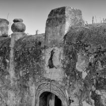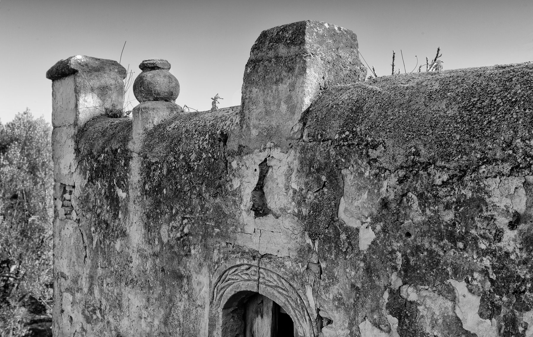Η ταξινόμηση των ανάγλυφων και χαρακτών κοσμημάτων αναδεικνύει τρία βασικά διακοσμητικά μοτίβα και τις παραλλαγές τους: το ρόδακα, το μοτίβο τεθλασμένης γραμμής ζικ ζακ και τις γιρλάντες με κλαδιά. Ο ρόδακας εμφανίζεται σε τέσσερις εκδοχές και εκφραστικές τεχνικές: χαρακτός με μονή και διπλή χάραξη, ανάγλυφος, με τέσσερα, πέντε ή έξι πέταλα του λουλουδιού ανάλογα με την πηγή προέλευσης – αρχαιοελληνική ή πρωτοχριστιανική ως σταυρός. Το επαναλαμβανόμενο μοτίβο ζικ ζακ εμφανίζεται σε δύο ανάγλυφες λειτουργικές εκδοχές και μία ζωγραφική: ως μοτίβο ραφιού-πλάκας και ως μισοτελειωμένη χαρακτή γιρλάντα στην πόρτα εισόδου του κυρίως σπιτιού. Η ζωγραφική εκδοχή συναντάται στη διαχωριστική ζώνη των μεγαλύτερων επιτοίχιων παραστάσεων. Οι γιρλάντες με τα κλαδιά είναι ανάγλυφες (μόνο στο πατητήρι είναι χαρακτές σε επίχρισμα), με σαφείς αναφορές σε ζωγραφικές ή χαρακτές κατασκευές ελληνικής λαϊκής τέχνης. Στα γλυπτά, το καθένα από τα οποία είναι μοναδικό, παρατηρούμε ποικίλες αναφορές – μορφολογικές και συμβολικές, από τη σφίγγα έως τον αετό με θαυμαστή αφομοιωτική δυνατότητα και εκφραστική απλοποίηση. Στα πιο πρωτότυπα μπορούμε να κατατάξουμε τα κεφάλια των Τούρκων, με τα προσωπικά χαρακτηριστικά και τα στοιχεία της αμφίεσής τους – μουστάκια, φέσι, κοσμήματα. Παρόμοια κεφάλια με προστατευτικό περιεχόμενο, αποτρεπτικό των επιθέσεων, συναντούμε σε Πυργόσπιτα (Μάνη, νησιωτική Ελλάδα), αλλά και στην Αίγινα στον Πύργο της Μονής Χρυσολεόντισσας (σημ. 13). Ο ρόλος τους δεν περιορίζεται στη διακόσμηση. Είναι κυρίως συμβολικός και τελετουργικός με αναφορές σε δοξασίες πολιτισμών (ανατολικός-δυτικός), αλλά και ιστορικές περιόδους (αρχαία, μεσαιωνική κ.λπ.). Σε αυτήν την ανάγνωση των γλυπτών ο ίδιος ο δημιουργός φέρεται να αποδίδει τον συμβολικό τους χαρακτήρα με εννοιολογικές ή μορφολογικές αναφορές: ο αετός-δύναμη, οι Τούρκοι πολεμιστές-προστάτες, το ρολόι-χρόνος, ο χοίρος-καλοτυχία, το φίδι επάνω στο φαλλικό σύμβολο-γνώση, η χριστιανική άμπελος, τα ανθισμένα κλαδιά κ.ο.κ. (σημ. 14).