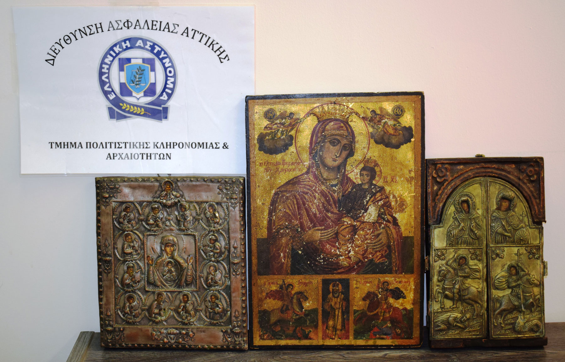 – Μία θρησκευτική εικόνα που απεικονίζει «Τη Θεοτόκο την Οδηγήτρια», «Τον Άγιο Γεώργιο τον Δρακοντοκτόνο» και «Τον Άγιο Δημήτριο που σκοτώνει τον Ιουλιανό» του 19ου αιώνα μ.Χ.