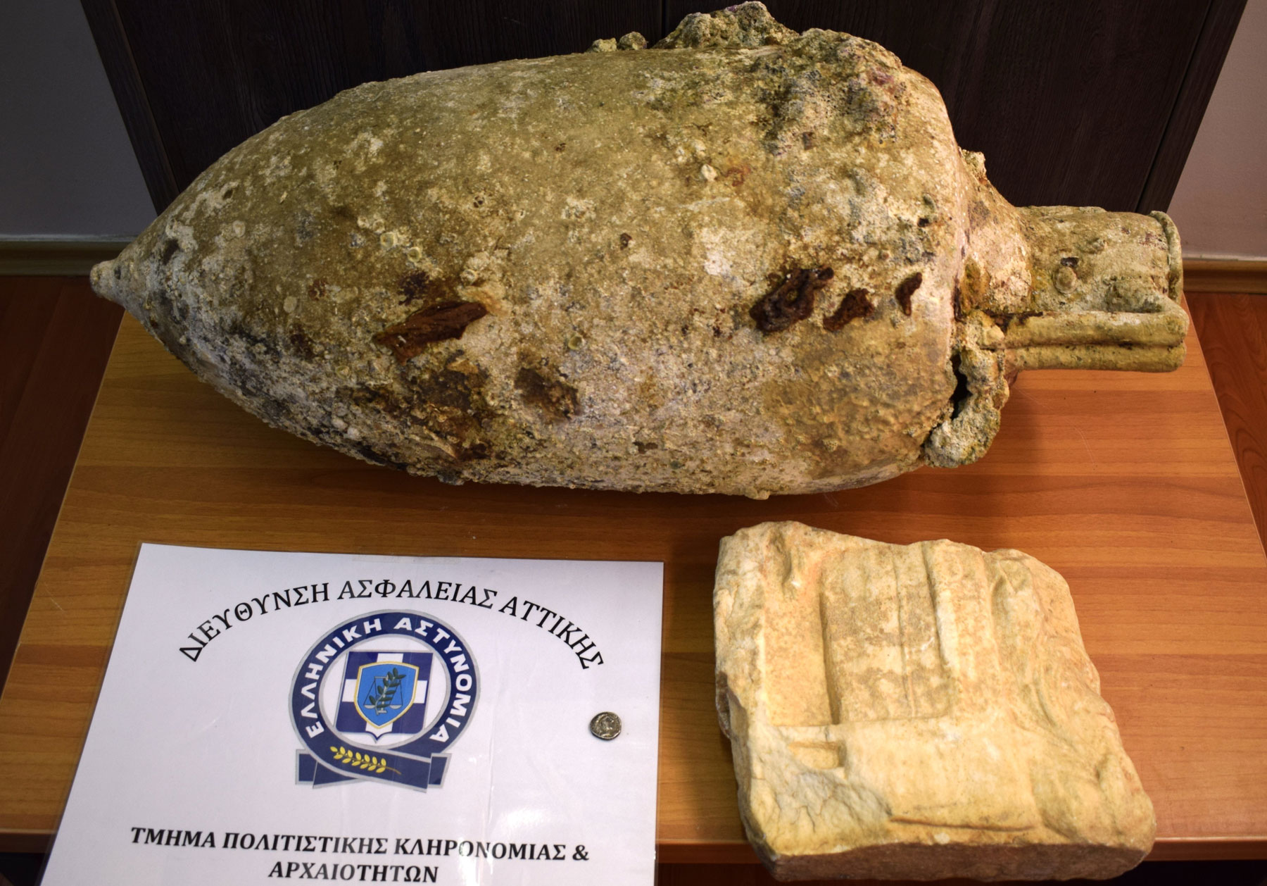 Αστυνομικοί του Τμήματος Πολιτιστικής Κληρονομιάς και Αρχαιοτήτων της Διεύθυνσης Ασφάλειας Αττικής συνέλαβαν την Παρασκευή 20 Ιουλίου 2018 στην Ανάβυσσο Αττικής ένα ανδρόγυνο, ηλικίας 62 και 58 ετών αντίστοιχα, για παράνομη κατοχή αρχαίων αντικειμένων.