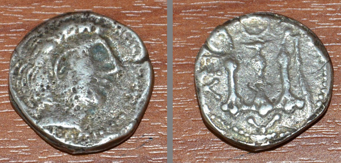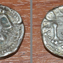 – Ένα ασημένιο νόμισμα στον τύπο του ρωμαϊκού δηναρίου του 1ου αιώνα π.Χ.