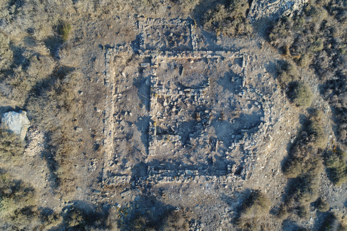 Ως προς το συγκρότημα (Κτίριο 2) με τα τουλάχιστον 15 δωμάτια, που εντοπίστηκε ανατολικά της βασιλικής, οι έρευνες έδειξαν ότι «οι επιμήκεις εξωτερικοί τοίχοι του συγκροτήματος είναι ισχυροί με σχετικά μεγάλο πλάτος (γύρω στο ένα μέτρο)», γεγονός που κάνει τους ανασκαφείς να υποθέτουν ότι εξυπηρετούσε και αμυντικούς σκοπούς. «Μάλιστα, στο μέσον περίπου του μήκους του κτιρίου παρατηρείται ορθογώνιο έξαρμα πλάτους 5,50 μ. και μήκους 7 μ., που αναμφίβολα ταυτίζεται με προμαχώνα ή πύργο. Ισχυρή οχυρωματική κατασκευή (“πύργος”) αποκαλύφθηκε και στο νότιο άκρο του οικοδομικού συγκροτήματος», αναφέρει, μεταξύ άλλων, η ανακοίνωση.