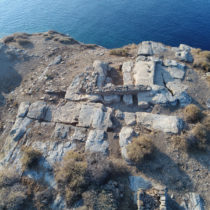 Πρόκειται για την αποκάλυψη μιας τρίκλιτης βασιλικής με νάρθηκα και ημικυλινδρική αψίδα, η οποία έχει δύο τουλάχιστον οικοδομικές φάσεις, μια παλαιοχριστιανική και μια μεταγενέστερη (ίσως του 7ου-8ου αιώνα), ενός κτιρίου μήκους 80 μ. περίπου, που αποτελείται από τουλάχιστον 15 ορθογώνια δωμάτια σε παράταξη και ισχυρούς εξωτερικούς τοίχους που εξυπηρετούσαν πιθανότατα και αμυντικούς σκοπούς, καθώς και δυο πύργων. Επίσης, εντοπίστηκαν δεκάδες ορθογώνιοι χώροι, εν μέρει λαξευμένοι στον φυσικό βράχο, για τους οποίους η ως τώρα έρευνα δείχνει χρήση τουλάχιστον ως την Ύστερη Αρχαιότητα, καθώς και θραύσματα κεραμικής και εργαλείων από οψιανό της Πρωτοκυκλαδικής περιόδου.