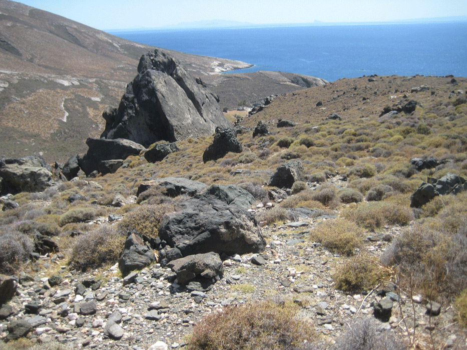 «Η μεγαλύτερη πηγή ίασπη (νεφρίτη ή ιαδεΐτη) στο Αιγαίο εντοπίζεται στο κυκλαδίτικο νησί της Σύρου. Κατά τη διάρκεια μιας επιφανειακής επισκόπησης, εντοπίστηκαν για πρώτη φορά φολίδες απολέπισης και προπαρασκευαστικές μορφές εργαλείων παλαιάς ηλικίας που καταδεικνύουν την ύπαρξη διαφόρων τοποθεσιών κατεργασίας του γύρω από τα μεγάλα λατομεία ιαδεΐτη της Σύρου. Ακολούθησε μια σειρά από αναλύσεις XRD και ICP προκειμένου να ταξινομηθούν τα ακριβή τους ιχνοστοιχεία».