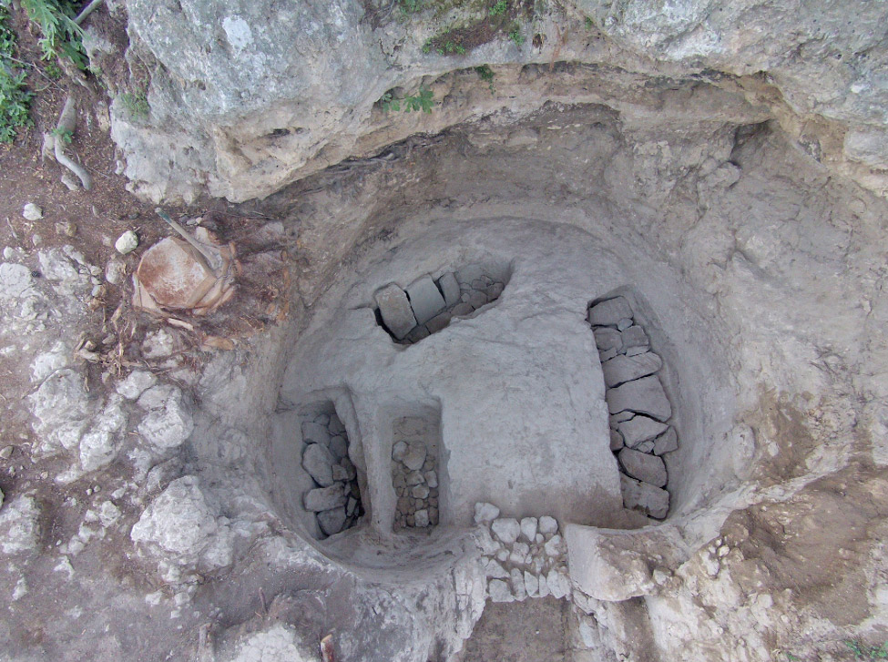 Η ανασκαφή της Αρχαιολογικής Υπηρεσίας που μεσολάβησε της σύλησης και του επαναπατρισμού έφερε στο φως μία συστάδα από 16 θαλαμοειδείς τάφους, λαξευμένους στο βράχο της περιοχής και αποτελούμενους από τρία τμήματα: το δρόμο, το στόμιο και τον ταφικό θάλαμο.