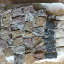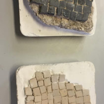 Από την έρευνα που πραγματοποιήθηκε με τις αρμόδιες Υπηρεσίες διαπιστώθηκε ότι τα τμήματα ψηφιδωτών από τη Δήλο, διαστάσεων 7×8 εκ., προέρχονται κατά πάσα πιθανότητα από το δάπεδο ελληνιστικής οικίας, ενώ το τμήμα ψηφιδωτού από τη Βιβλιοθήκη του Αδριανού, διαστάσεων 10×9 εκ., προέρχεται από το δάπεδο του τετρακόγχου οικοδομήματος που χρονολογείται στον 5ο αι. μ.Χ.