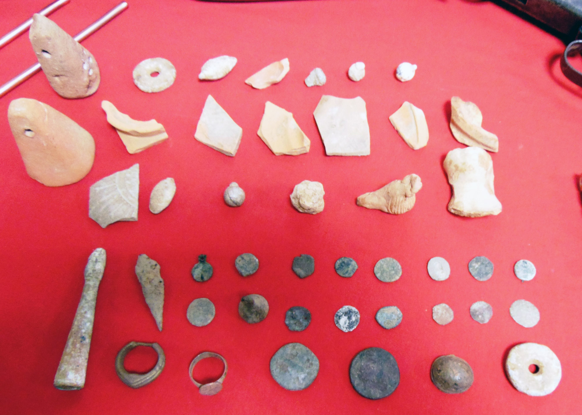 Στο σπίτι του 68χρονου, μεταξύ άλλων, βρέθηκαν και κατασχέθηκαν: 14 χάλκινα και ασημένια νομίσματα που χρονολογούνται στους ρωμαϊκούς χρόνους, τμήμα από σιδερένιο μαχαιρίδιο, 4 χάλκινα αντικείμενα-εξαρτήματα ζώνης, 8 μεταλλικά σφαιρικά αντικείμενα, 18 τμήματα πήλινων αγγείων, προτομών και άλλων αντικειμένων, αρχαιολογικός και τουριστικός οδηγός νομού της Θεσσαλίας, εκτυπωμένοι χάρτες και εγχειρίδιο που αφορά σε αρχαία ελληνικά νομίσματα.