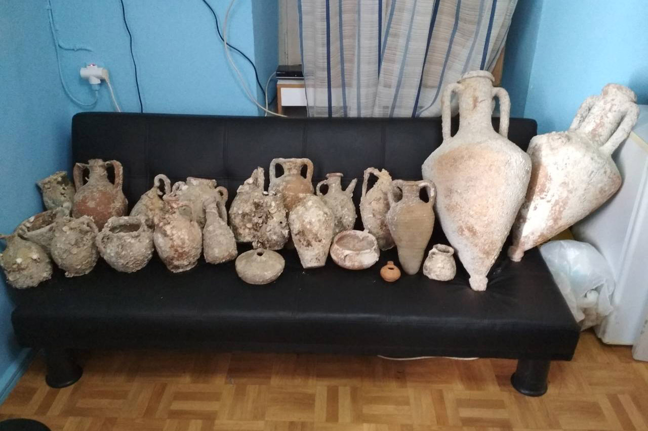 Στο πλαίσιο έρευνας που πραγματοποιήθηκε στην κατοικία του κατηγορούμενου, παρουσία δικαστικού λειτουργού, βρέθηκαν στην κατοχή του και κατασχέθηκαν 23 αντικείμενα (αμφορείς, αγγεία, κανάτια κ.ά.) ενάλιας προέλευσης, που εμπίπτουν στις προστατευτικές διατάξεις του Ν.3028/02.