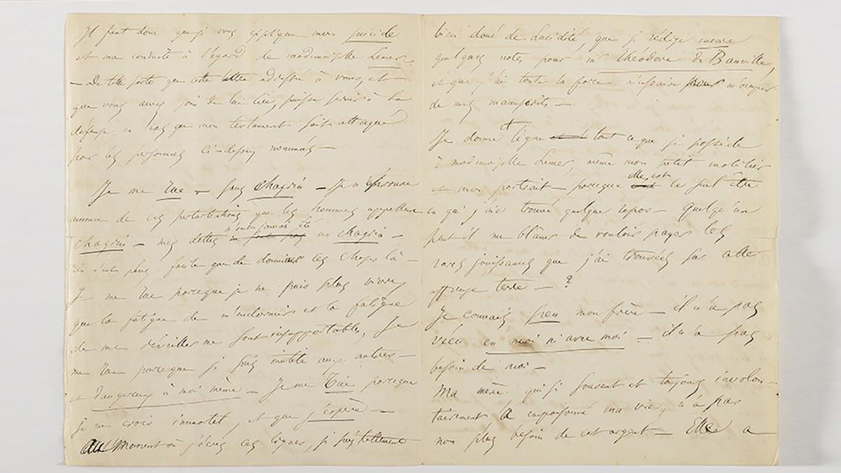 Μια συγκινητική επιστολή του νεαρού Σαρλ Μποντλέρ με την οποία ανακοίνωνε την πρόθεσή του να αυτοκτονήσει, μια απόπειρα από την οποία τελικά θα επιβιώσει το 1845, θα πωληθεί την Κυριακή μαζί με 34 ακόμη επιστολές του συγγραφέα της ποιητικής συλλογής «Άνθη του κακού» από τον οίκο Osenat.