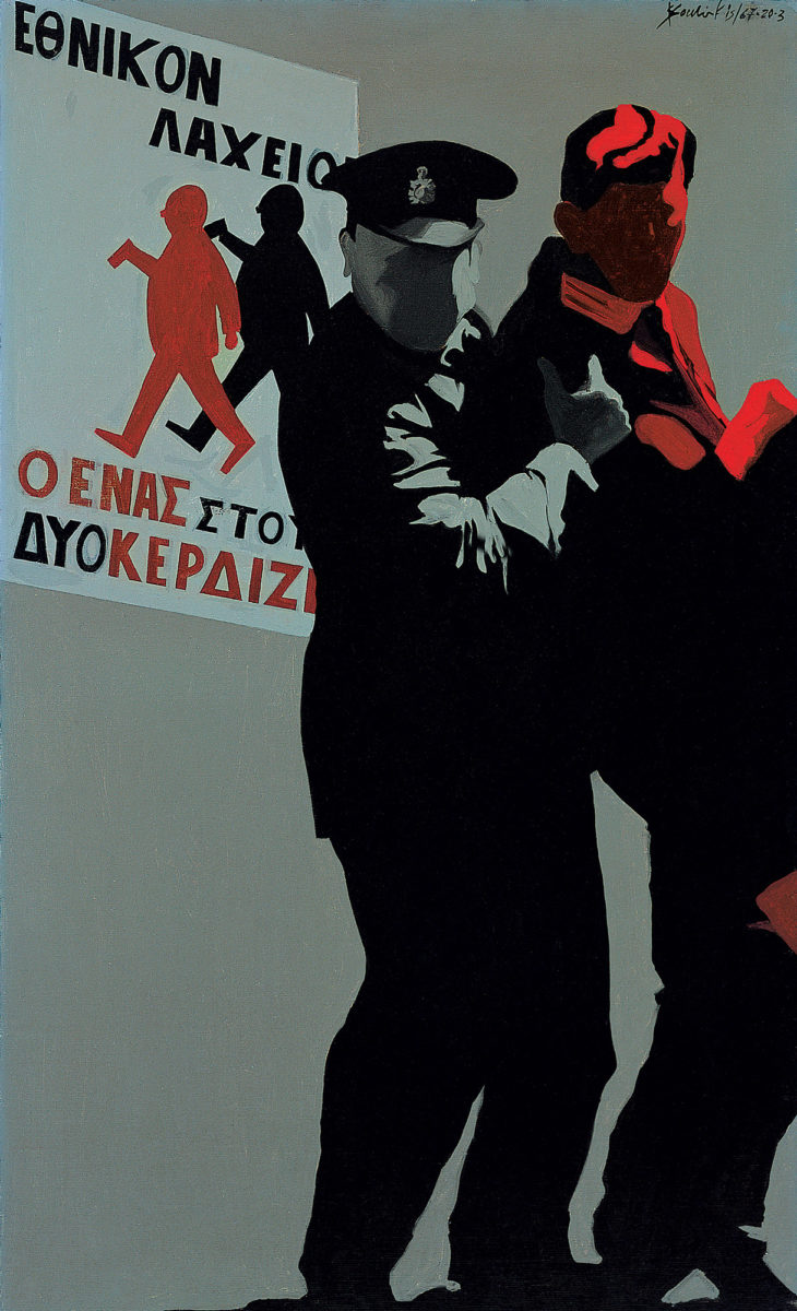 Περιλαμβάνει περίπου 100 έργα ζωγραφικής ξεκινώντας από την πρώιμη περίοδό του το 1957, την περίοδο της πολιτικής του ζωγραφικής (1960-1967), την περίοδο αυτοεξορίας του σε Ευρώπη, Αμερική, Καναδά (1967-1972) καθώς και τον κύριο όγκο της δουλειάς του στην Ελλάδα (1981-2009). Ενδεικτικά αναφέρονται η σουρεαλιστική περίοδος (1980-1984), τα πορτρέτα (1985-1996), το αφιέρωμα στον Τσαρούχη (1988-1998), οι υπόγειες διαδρομές (1993-1998) και οι επανεγγραφές (1997-2009). Ταυτόχρονα με τη συγκροτημένη παρουσίαση της ζωγραφικής του, θα εκτεθεί και τμήμα του παράλληλου έργου του καλλιτέχνη, αφού διετέλεσε για 30 και πλέον χρόνια γελοιογράφος και εικονογράφος σε ελληνικά και διεθνή έντυπα.