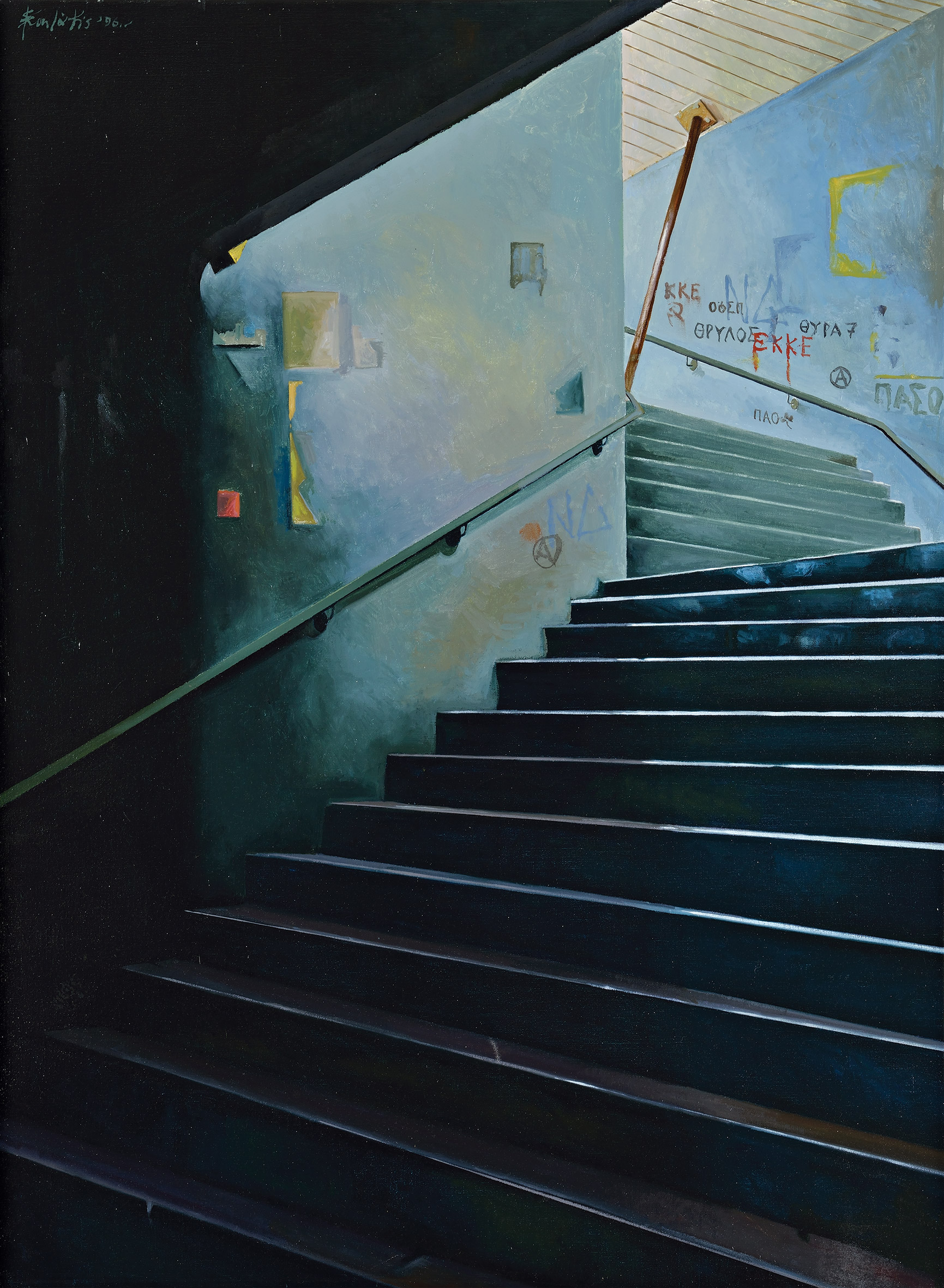 Όπως σημειώνει η επιμελήτρια της έκθεσης Ελένη Αθανασίου «(…) το έργο του με άξονα την ανθρώπινη μορφή υιοθετεί ένα ρεαλιστικό ιδίωμα το οποίο βέβαια δεν σηματοδοτεί επιστροφή σε μια παλιά τάξη πραγμάτων και σε παρωχημένα πρότυπα, αλλά επιδιώκει να διαμορφώσει μια μοντέρνα εκδοχή παραστατικότητας, που προτείνει νέες ρητορικές της εικόνας και έναν καινούριο αφηγηματικό και θεματολογικό προσανατολισμό στο πραγματικό (…). Βαθιά ανθρωποκεντρικός με στοιχεία ρεαλισμού στη γραφή του, δόμησε τη δική του εικαστική γλώσσα και εκπροσώπησε τη γενιά του με ροκ διάθεση και πολύ χιούμορ, χαράσσοντας ανεξίτηλα το στίγμα του στην εξέλιξη της ελληνικής ζωγραφικής (…)».