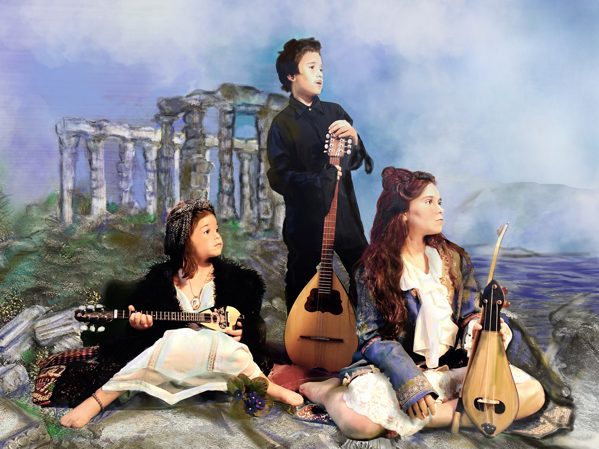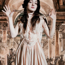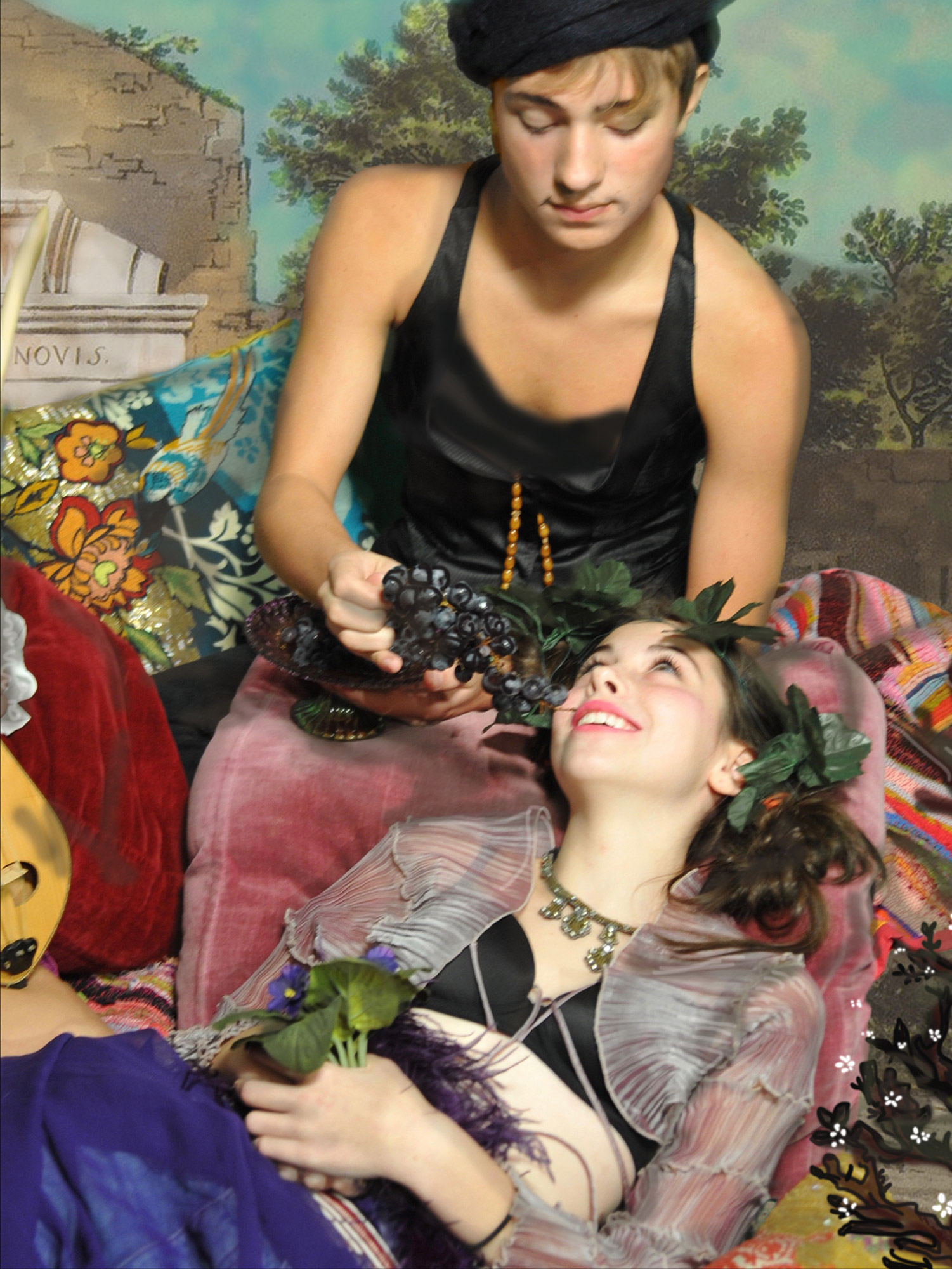 «Μικρή, μαγνήτιζα με τη φαντασία μου τα άλλα παιδιά και η βεράντα του σπιτιού μας γινόταν καράβι, ο κήπος μας βυθός, οι γάτες εξωγήινα όντα κι εμείς ομάδα επόμενων εξερευνητών που όμως έβλεπαν μέσα από τα μάτια της δικής μου φαντασίας. Κι ενώ σπάνια ζωγραφίζω από φύση, συχνά έστηνα τους φίλους μου ντύνοντάς τους θεατρικά με στεφάνια από λουλούδια και μαντήλια όπως στους κλασικούς πίνακες και τους φωτογράφιζα. Η αναπαραστατική ζωγραφική των ζωγράφων της εποχής του Βύρωνα, η ερωτική σαγήνη των tableaux vivants, το μυστήριο που χαρίζουν οι γκραβούρες σε κάποιο φυσικό τοπίο και οι νέες δυνατότητες για ψηφιακή ζωγραφική έγιναν το υλικό και η έμπνευση ενός κόσμου που συνέλαβα για να τοποθετήσω σαν αλληγορίες τα ζωντανά όμορφα πλάσματα που μετατρέπω σε βυρωνικούς ήρωες», τονίζει η εικαστικός στο ΑΠΕ-ΜΠΕ.
