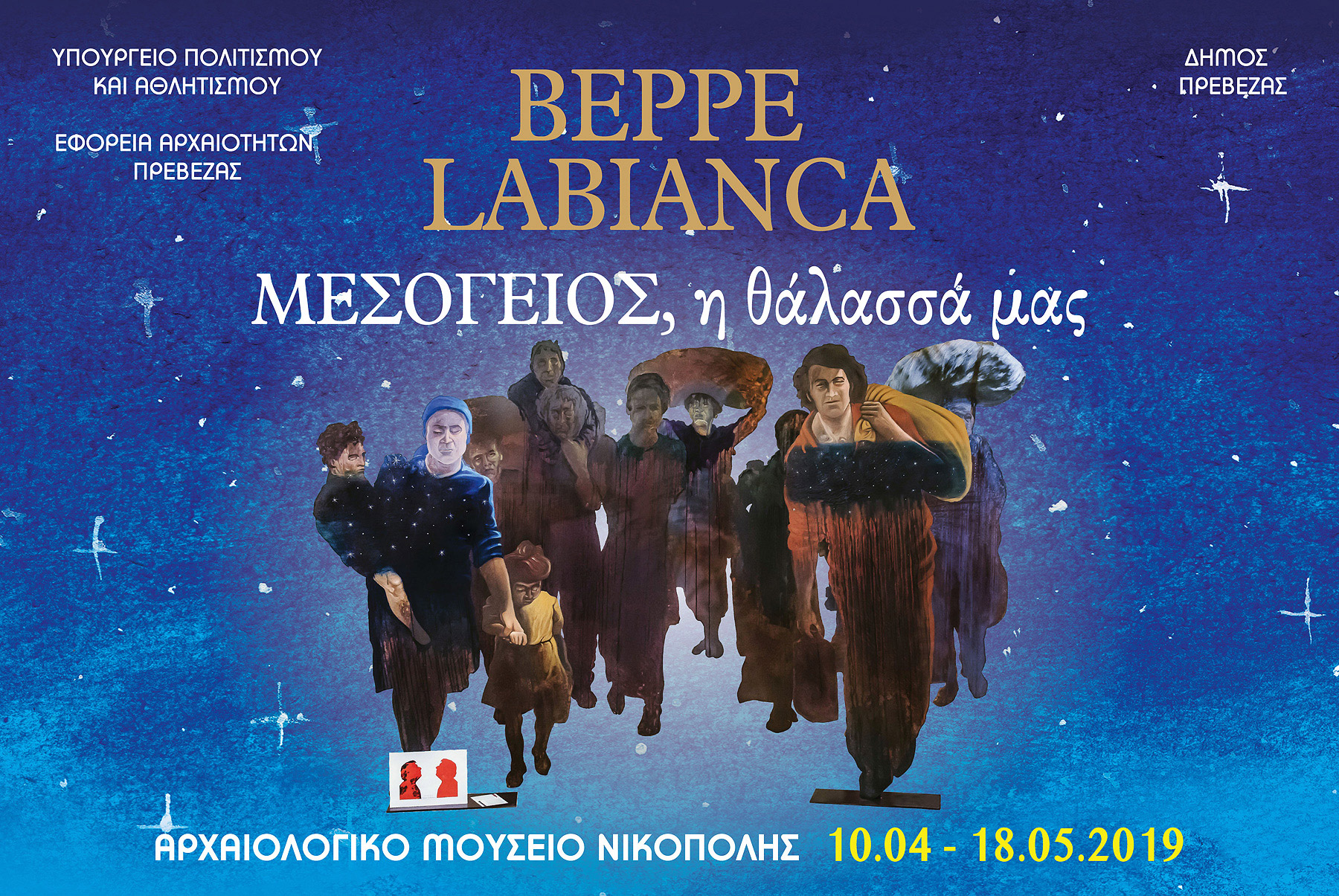 Η Εφορεία Αρχαιοτήτων Πρέβεζας σε συνεργασία με τον Δήμο Πρέβεζας φιλοξενεί στο Αρχαιολογικό Μουσείο της Νικόπολης έργα του Ιταλού εικαστικού Beppe Labianca. Η θεματική, εμπνευσμένη από τη «Μεσόγειο των Πολιτισμών», αναπτύσσεται διαδοχικά στους χώρους του Μουσείου, ενός Μουσείου αφιερωμένου σε μία από τις σημαντικότερες μάχες της ιστορίας στο χώρο της Μεσογείου, τη ναυμαχία του Ακτίου, το 31 π.Χ., που υπήρξε η απαρχή για την εγκαθίδρυση της Ρωμαϊκής Αυτοκρατορίας.
