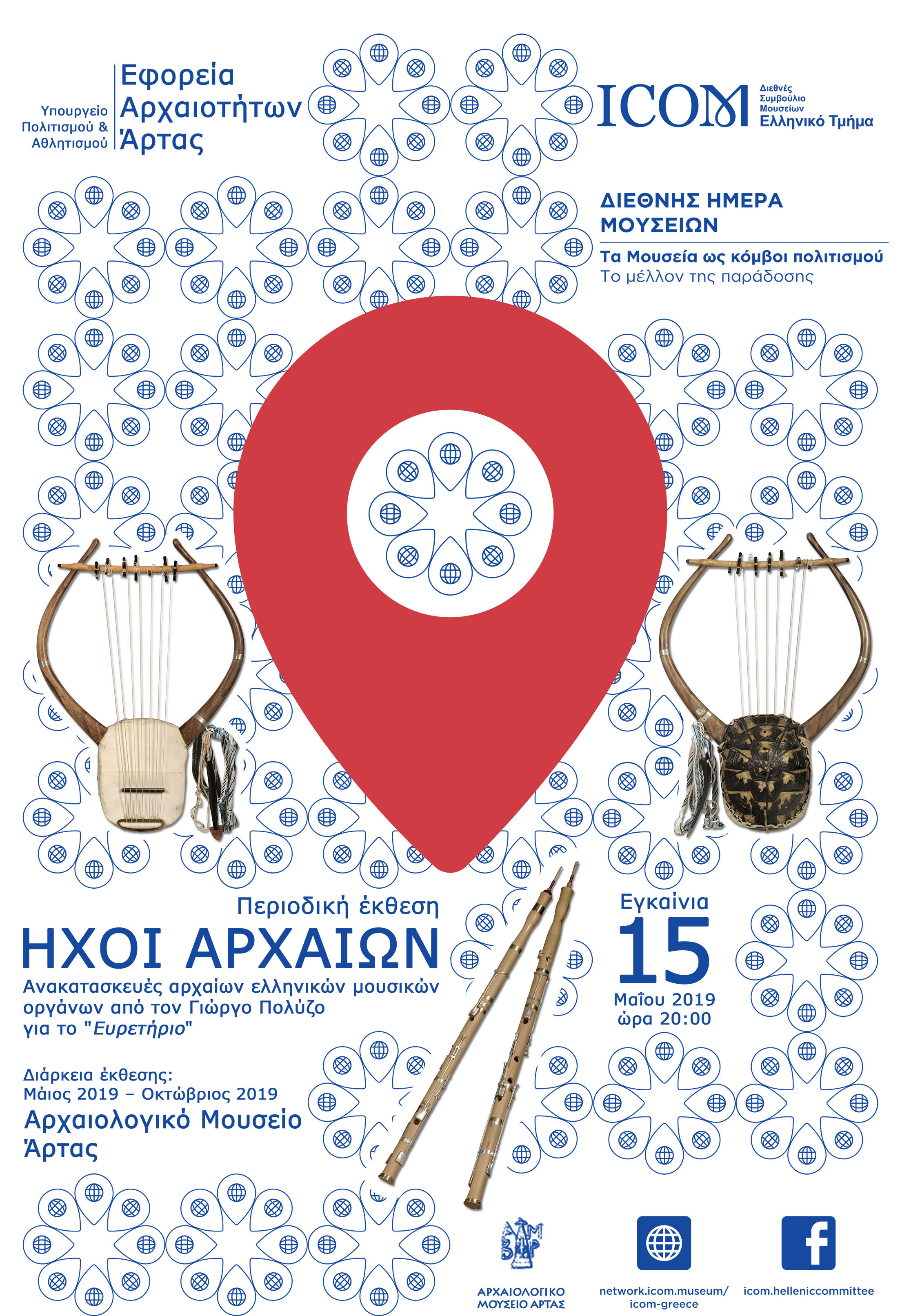 Περιοδική έκθεση με τίτλο «Ήχοι Αρχαίων» θα εγκαινιάσει η Εφορεία Αρχαιοτήτων Άρτας την Τετάρτη 15 Μαΐου 2019 και ώρα 20:00 στο Αρχαιολογικό Μουσείο Άρτας, στο πλαίσιο του εορτασμού της Διεθνούς Ημέρας Μουσείων.