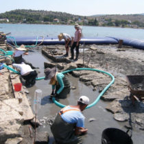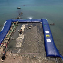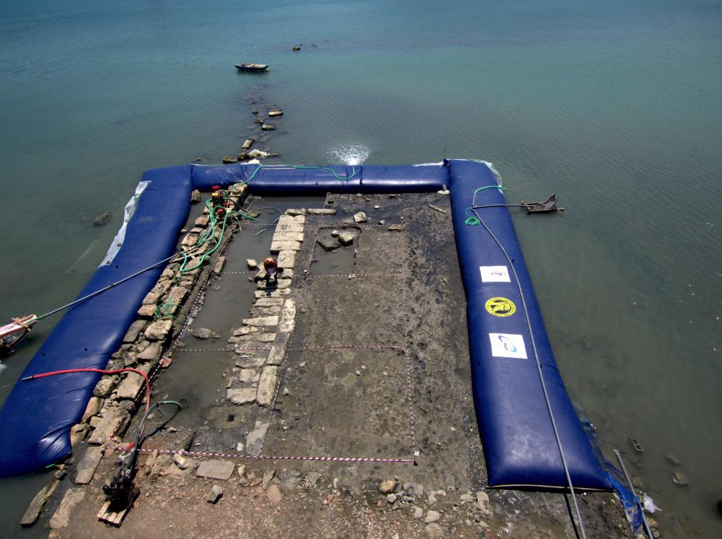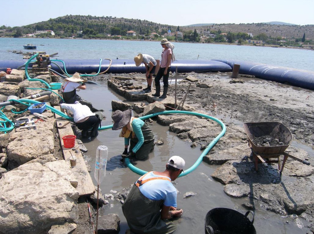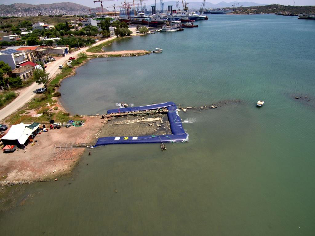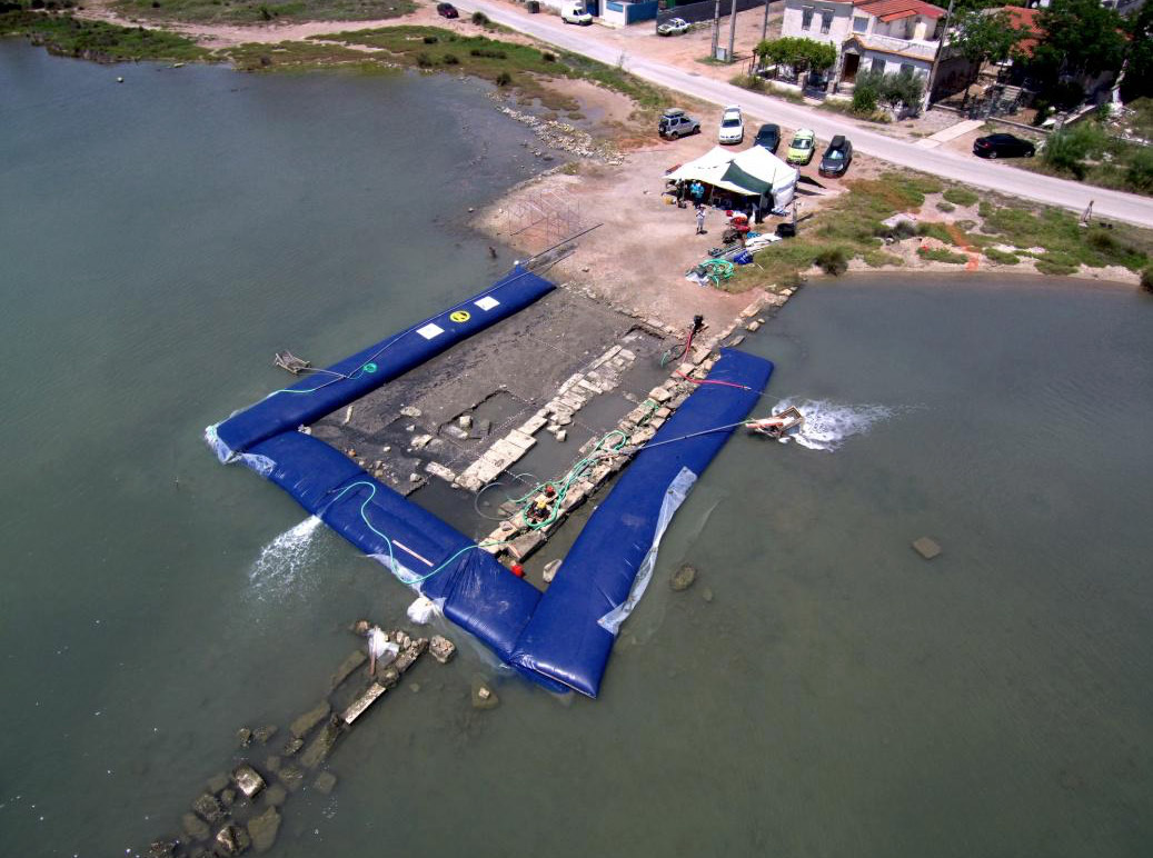 »Για την αποτελεσματικότερη διερεύνηση του μεγάλου καταβυθισμένου αρχαίου κτηρίου στη βορειοδυτική πλευρά του μυχού του σημερινού Όρμου του Αμπελακίου, υιοθετήθηκε καινοτόμος τεχνική για τα ελληνικά δεδομένα, με την εγκατάσταση εύκαμπτου υδατοφράκτη από την τεχνική εταιρία “K&P Engineering” των Θ. Κατσέλη και Γ. Πέτροβα, για την αφυδάτωση του θαλασσίου πεδίου, που επέτρεψε τη συνδυασμένη χρήση μεθόδων και τεχνικών μέσων υποβρύχιας και χερσαίας ανασκαφής στην έρευνα της αρχαίας κτηριακής δομής.