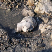 »Η μνημειώδης κατασκευή, που σήμερα βρίσκεται μέσα στο βούρκο, φαίνεται να είναι βασικά διευθετημένη στον άξονα Βορράς-Νότος, σε μήκος μέχρι στιγμής 15 μ., με βέβαιες συνέχειες προς τα βόρεια και τα δυτικά. Αποδεικνύεται ότι η θεμελίωση, στην ανατολική πλευρά της, αποτελεί το στιβαρό υπόβαθρο νεότερου μόλου, κατασκευασμένου τουλάχιστον προ 200 ετών, από το οικοδομικό υλικό του αρχαίου κτηρίου.