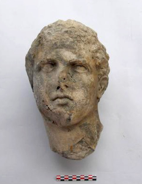 »Από την ομάδα των μαρμάρινων έργων της ύστατης Κλασικής/αρχόμενης Ελληνιστικής περιόδου, ξεχωρίζει ακέραιη κεφαλή αγάλματος νέου, πιθανώς αθλητή ή θεού (Ερμή;). Είναι η πρώτη του είδους που έρχεται στο φως στην ιστορική νήσο. Πρόκειται για πρωτότυπο έργο, εξαίρετο δείγμα της ελληνικής πλαστικής του προχωρημένου 4ου αι. π.Χ., προϊόν ανώτερου εργαστηρίου, που φέρει το αποτύπωμα της μεγάλης τέχνης. Στα επιμέρους στοιχεία του έργου αναγνωρίζονται, ήδη, τεχνοτροπικά χαρακτηριστικά που σχετίζονται με την παραγωγή της Σχολής του Σκόπα ή της Σχολής του Λυσίππου.