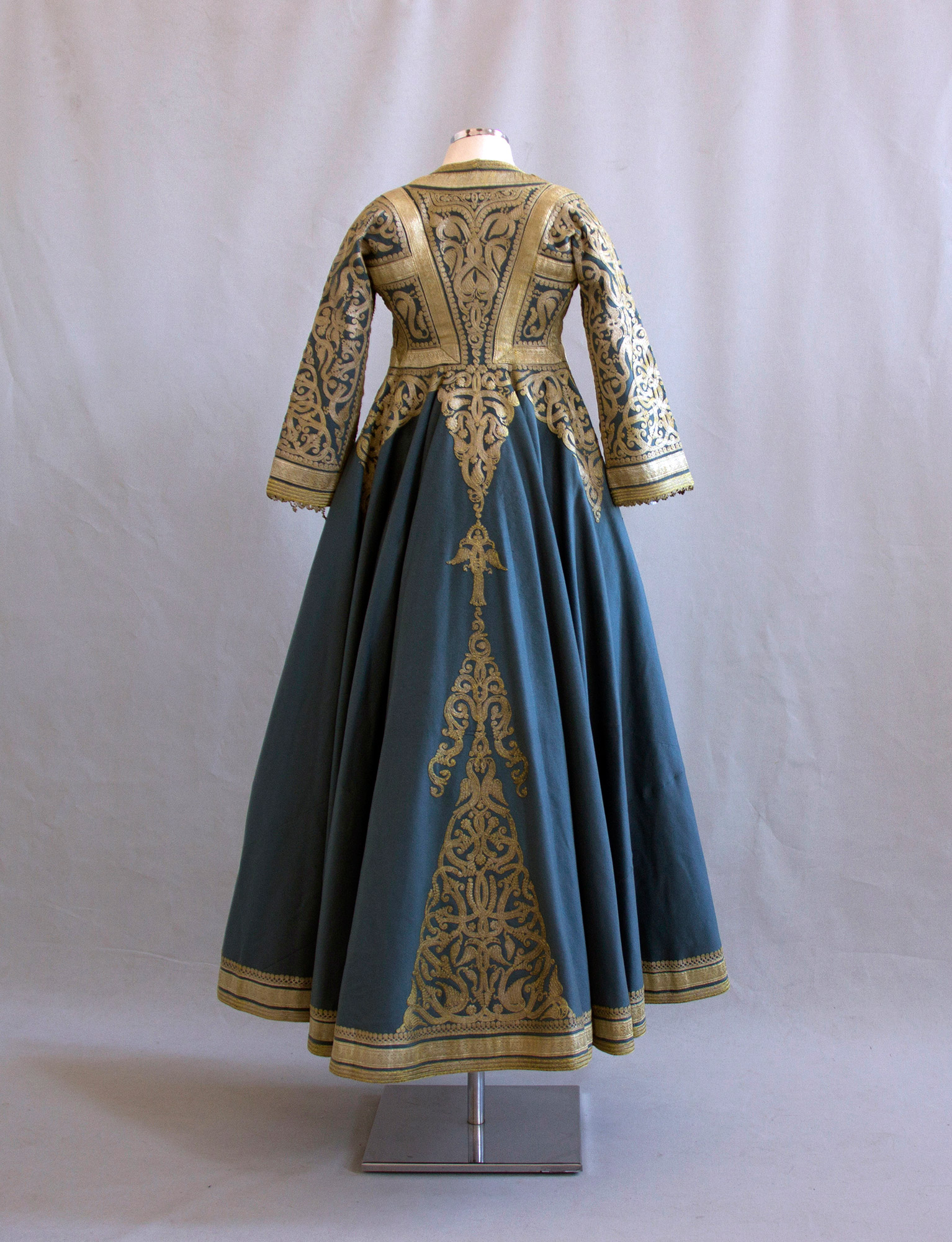 «Το σπάνιο πανωφόρι από γκριζογάλανο καμηλό ύφασμα, με τα περίτεχνα τερζήδικα κεντήματα, ανήκε στην Κωνσταντίνα Γιαννοπούλου, το γένος Μαυρόπουλου, προγιαγιά του δωρητή, που ήταν σύγχρονη της βασίλισσας Αμαλίας και ζούσε στο Ναύπλιο» γράφει η κα Παπαντωνίου.