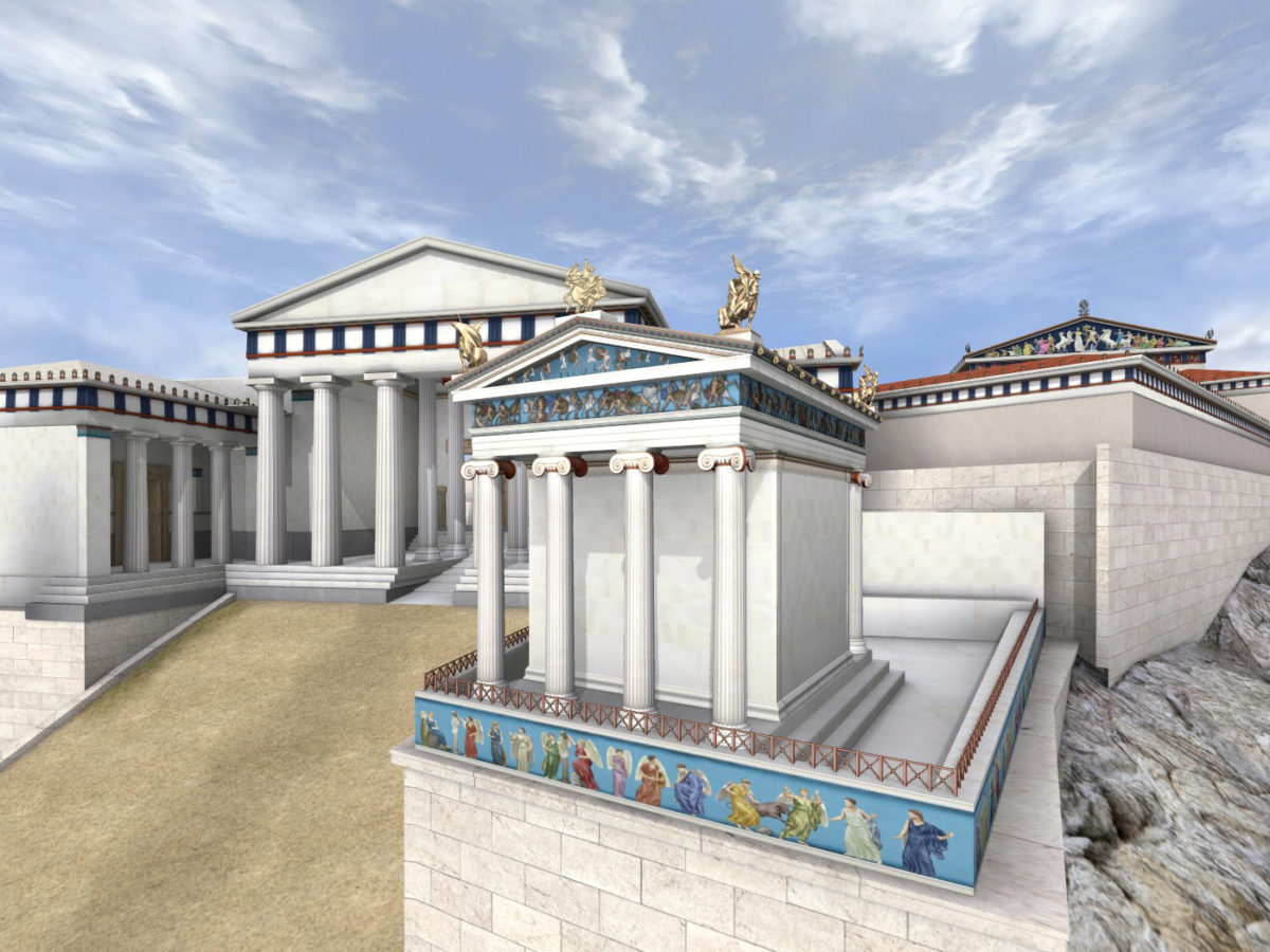 Παράλληλα, παρουσιάζονται ναοί και αγάλματα τα οποία δεν σώζονται μέχρι σήμερα όπως το Αρρηφόριον, το Ιερό του Διός Πολιέως, το Ιερό της Αρτέμιδος Βραυρωνίας, η Χαλκοθήκη, ο γλυπτός διάκοσμος του Παρθενώνα με το χρυσελεφάντινο άγαλμα της θεάς Αθηνάς κ.ά.
