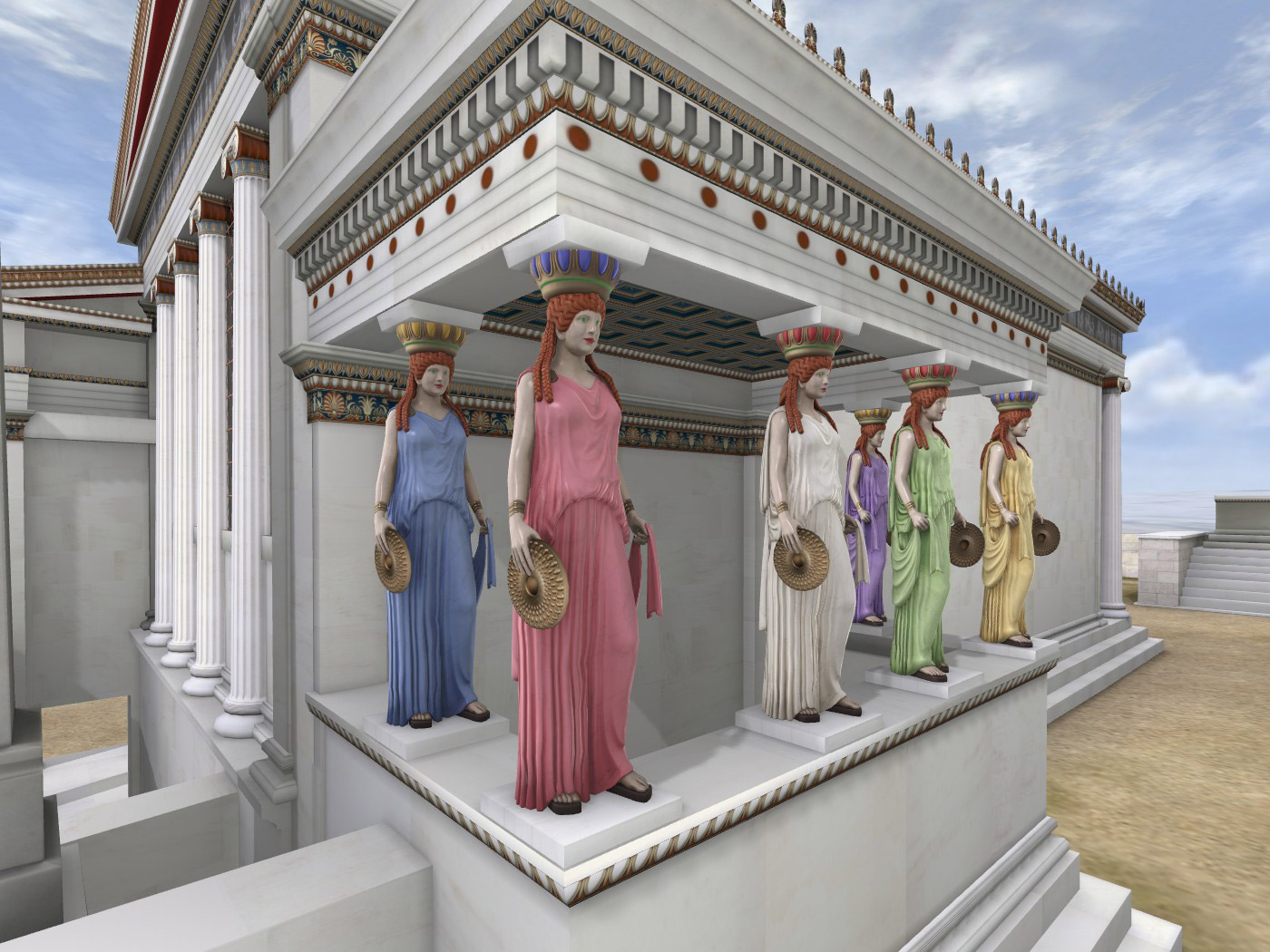 Με τη χρήση των νέων τεχνολογιών, ο θεατής έχει την ευκαιρία να θαυμάσει τα πιο περίπλοκα, από αρχιτεκτονικής άποψης, κτήρια της Ακρόπολης, όπως τον Παρθενώνα, το Ερεχθείο, το Ναό της Απτέρου Νίκης, τα Προπύλαια, αλλά και τα αγάλματα που τα διακοσμούσαν, σε 3D και στα φυσικά τους χρώματα, όπως ήταν την εποχή που δημιουργήθηκαν.