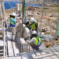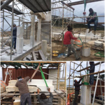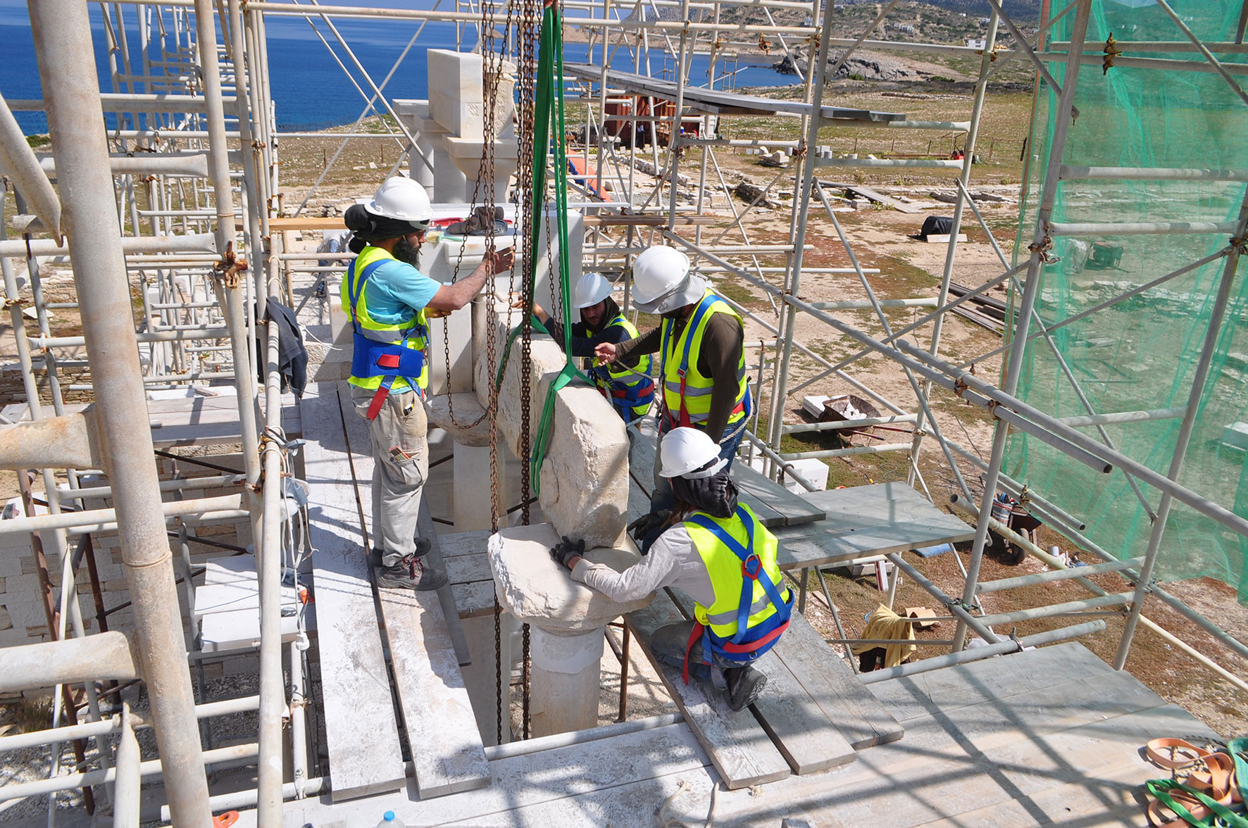 Οι αναστηλωτικές εργασίες διήρκησαν τέσσερις εβδομάδες. Εργάστηκαν έξι ειδικευμένοι μαρμαροτεχνίτες υπό την επίβλεψη του αρχιτέκτονα Γ. Ορεστίδη και ολοκληρώθηκαν σημαντικές εργασίες, όπως η αποκατάσταση της παραστάδας (κοινός τοίχος ναού και εστιατορίου) με την τελική οριζοντίωση της ανώτερης επιφάνειας και την τοποθέτηση – προσαρμογή του επικράνου της, η οριστική τοποθέτηση του αρχαίου κιονόκρανου του δεύτερου από βορρά κίονα του εστιατορίου, η οριστική διαμόρφωση και τοποθέτηση του δεύτερου από βορρά επιστυλίου και του δεύτερου αντιθήματος του εστιατορίου, η κατασκευή του κατώτερου σπονδύλου του 3ου από βορρά κίονα του εστιατορίου, η τοποθέτηση όλων των κατώτατων σπονδύλων της κιονοστοιχίας του ναού, η καθ’ ύψος συμπλήρωση του τοίχου μεταξύ δωματίων Α2 και Α3, καθώς και η συμπλήρωση λιθόπλινθων του δυτικού τοίχου του προστώου του ναού. Εξαιρετικά απαιτητικές ήταν οι εργασίες συγκόλλησης αρχαίων μελών με νέα συμπληρώματα που διαμορφώθηκαν με τη βοήθεια του ρομποτικού παντογράφου διαμόρφωσης μαρμάρων (CNC) στο εργοστάσιο στην Αθήνα (επιστύλιο ναού, κίονες ναού). Χάρη σε αυτές είναι έτοιμα προς τοποθέτηση ο τρίτος σπόνδυλος του εστιατορίου και τα υπόλοιπα επιστύλια του ναού.