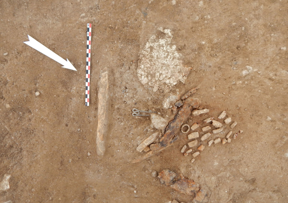 Μοναδικό εύρημα του νεκροταφείου αποτελεί το χρυσό προσωπείο που εντοπίστηκε σε λακκοειδή ανδρική ταφή με κάλυψη από αργούς λίθους. Μολονότι ο τάφος ήταν συλημένος και διαταραγμένος, εκτός της νεκρικής μάσκας σώθηκαν ένα χρυσό δακτυλίδι, μία αργυρή διφυής περόνη, τμήματα από σιδερένια ξίφη και σιδερένιες αιχμές, κεχριμπαρένιες ψήφοι, ένας χάλκινος λέβητας και μία οπισθότμητη πρόχους.