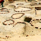 Σε ό,τι αφορά το κονίαμα των εσωτερικών τοίχων φαίνεται να είναι ένα τυπικό ασβεστοκονίαμα με αδρανή σύμφωνα με τη γεωλογία της περιοχής, ενώ για τον χρωματικό διάκοσμο των δωματίων έχει χρησιμοποιηθεί, η κόκκινη ώχρα και πιθανότατα το τεχνητό ultramarine, αν και δεν μπορεί να αποκλειστεί η χρήση του indigo. Ωστόσο, απαιτείται περαιτέρω διερεύνηση αφενός μεν με διαγνωστικές τεχνικές μη καταστρεπτικού ελέγχου για τη χαρτογράφηση του διακόσμου και της κατάστασης διατήρησης αυτού και αφετέρου με ενόργανη χημική ανάλυση για τον προσδιορισμό του ακριβούς χημικού τύπου ιδιαίτερα για τις μπλε χρωστικές καθώς επίσης και του οργανικού συνδετικού υλικού των χρωματικών στρωμάτων.