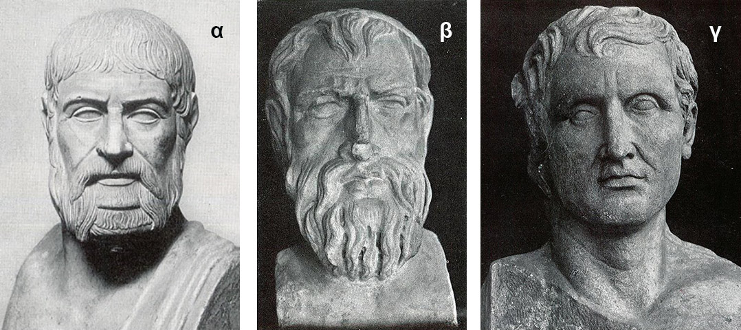 Στην εικόνα 3α, ο Πίνδαρος εικονίζεται με ψηλότερα σχεδιασμένο τον δεξιό οφθαλμό του (Musei Capitolini, σημ. 13) και στην εικόνα 3β, ο Αριστοφάνης με τον δεξιό οφθαλμό του μεγαλύτερο (Wilton House, Richmont, σημ. 14). Τέλος στην εικόνα 3γ, ο Μένανδρος με μεγαλύτερο και ψηλότερα σχεδιασμένο τον αριστερό οφθαλμό (Museo Nazionale Romano, Ρώμη, σημ. 15).