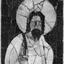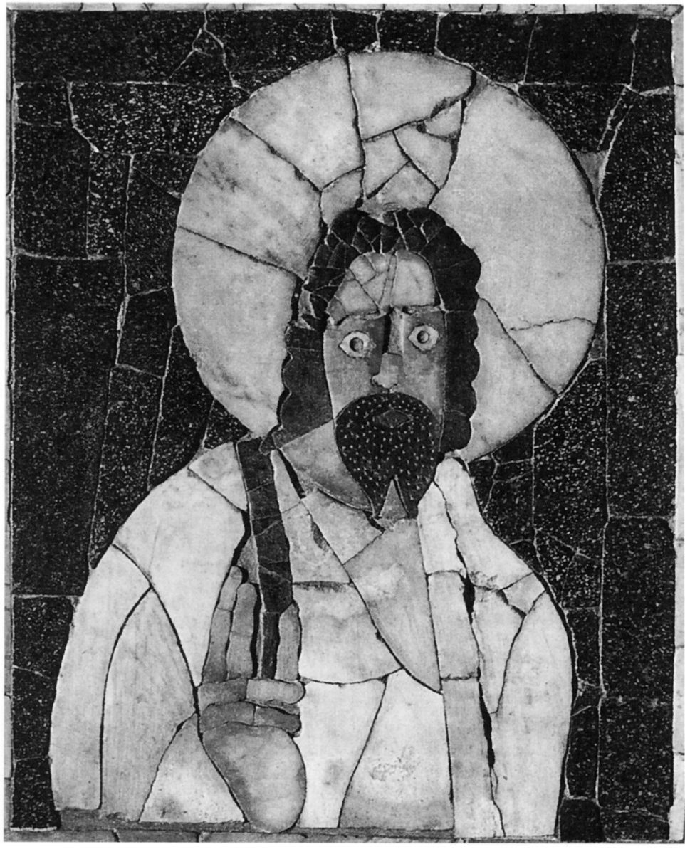 Ένα «opus sectile» του 4ου αι. μ.Χ. (εικ. 6) εμφανίζει την κεφαλή ενός χαρισματικού φιλοσόφου (πεφωτισμένος, «θείος άνδρας», σημ. 24) με φωτοστέφανο. Το πρόσωπο παρουσιάζεται με διεσταλμένους οφθαλμούς και παραμόρφωση της δεξιάς πλευράς του. Ο δεξιός οφθαλμός είναι σχεδιασμένος χαμηλότερα του αριστερού, η γραμμή των φρυδιών κλίνει προς τα κάτω δεξιά, η μύτη είναι σε μη κανονική θέση (Μουσείο της Όστια).