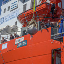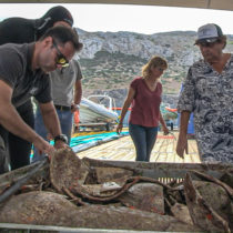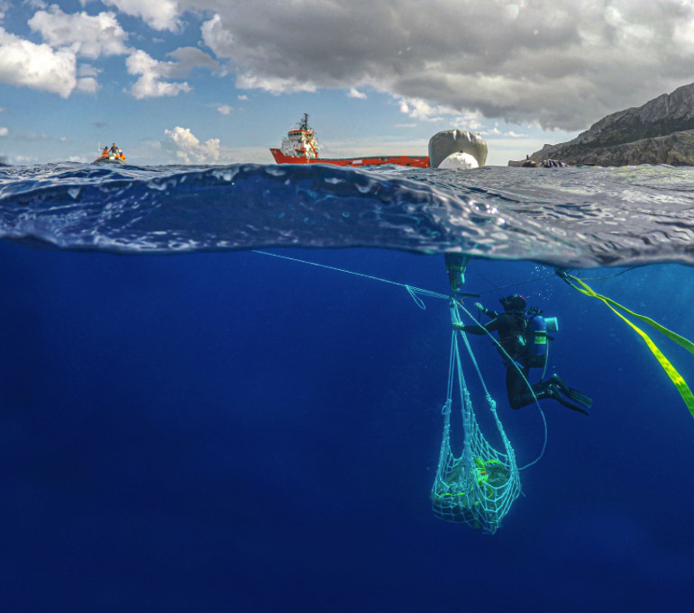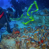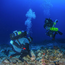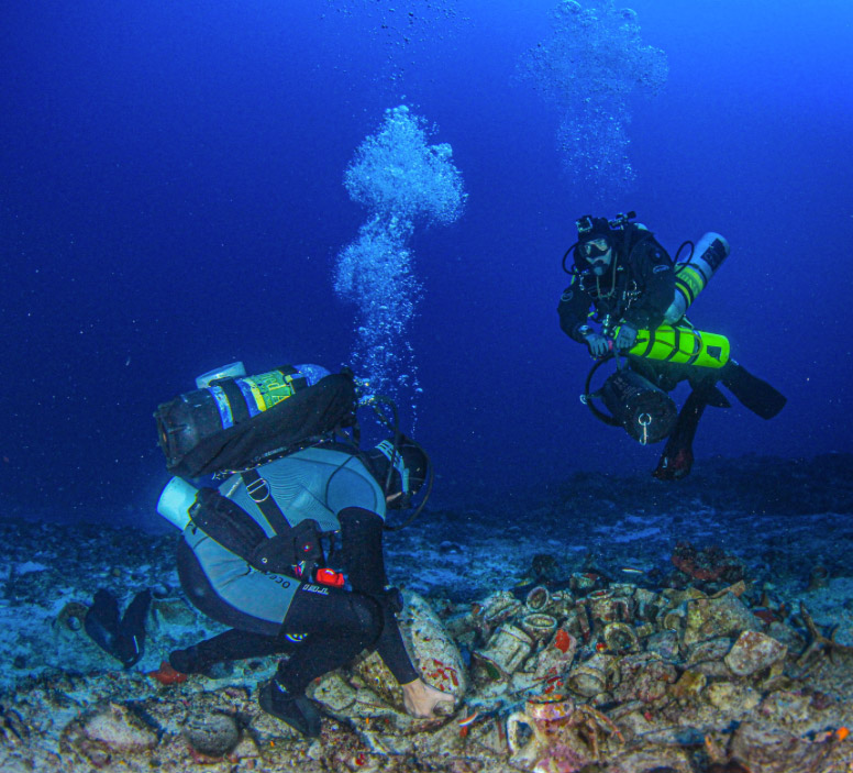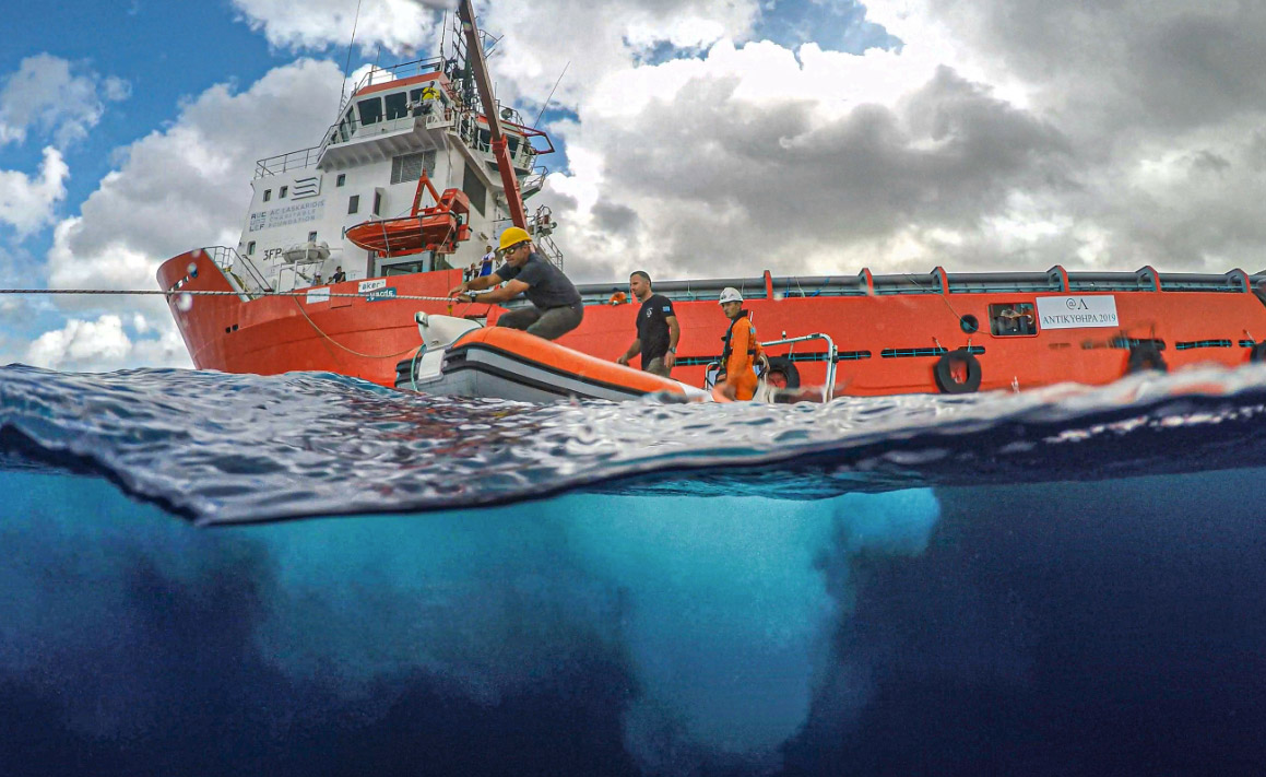Η Διευθύντρια της έρευνας, καταδυόμενη αρχαιολόγος Δρ Αγγελική Γ. Σίμωσι, καταδύθηκε και παρέμεινε στο πεδίο καθ’ όλη τη διάρκεια των ερευνών της εικοσαμελούς αποστολής, το μέγεθος της οποίας θεωρείται για πρώτη φορά τόσο εντυπωσιακό, αφού πέραν των συμμετεχόντων, που διέθεταν άρτια εκπαίδευση αλλά και καταδυτική εμπειρία στα βάθη του ναυαγίου, υπήρξε υποστήριξη των επιχειρήσεων από το σκάφος «Τyphoon». Το μοναδικό στο Αιγαίο αυτό σκάφος είναι μήκους 72 και πλάτους 16 μέτρων, και είναι εξοπλισμένο με υπερσύγχρονα μέσα ναυτικής πλοήγησης. Στην επιχειρησιακή πλατφόρμα του φιλοξενούνται πέντε μεγάλα φουσκωτά, σε επιφυλακή ανά πάσα στιγμή για τις απαιτούμενες ανελκύσεις.