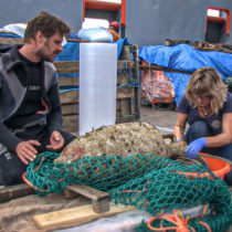 Αρχικά έγινε εντοπισμός εκ νέου του χώρου του ναυαγίου και νέα οριοθέτηση έπειτα από την τελευταία έρευνα του Σεπτεμβρίου 2017. Ανελκύστηκαν πέντε σάκοι με άμμο, που είχαν αφεθεί στο βυθό από την προηγούμενη ανασκαφική περίοδο, τα προϊόντα των οποίων κοσκινίστηκαν με μεγάλη προσοχή από εξειδικευμένη συντηρήτρια της Εφορείας Εναλίων Αρχαιοτήτων και παρουσία δύο αρχαιολόγων. Κατά τη διαδικασία του διαχωρισμού συλλέχθηκαν οστά, τα οποία πρέπει να αναλυθούν, πυρήνες κατά πάσα πιθανότητα ελιάς, χάλκινα καρφιά από το πλοίο καθώς και ένας μπρούτζινος δακτύλιος άγνωστης προς το παρόν χρήσης.