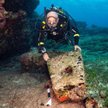 Σημαντικά αρχαιολογικά τεκμήρια περιλαμβάνονται στα ευρήματα της πρώτης υποβρύχιας ερευνητικής αποστολής στον θαλάσσιο χώρο της νήσου Κάσου. Συνολικά εντοπίστηκαν πέντε ναυάγια, καθώς και μία πιθανή αρχαία λιμενική εγκατάσταση. Ιδιαίτερα αξιόλογο εύρημα αποτελεί ένα ναυάγιο της Ύστερης Κλασικής περιόδου, το οποίο έφερε πέντε λίθινες πυραμιδοειδείς άγκυρες. Το φορτίο του πλοίου περιλαμβάνει, εκτός από αμφορείς τεσσάρων τουλάχιστον διαφορετικών τύπων, λεπτή κεραμική καθώς και τμήματα αποθηκευτικών πίθων. Με βάση την κεραμική που περισυλλέχθηκε και ανελκύστηκε, το ναυάγιο μπορεί να χρονολογηθεί στα τέλη του 4ου ή τις αρχές του 3ου αιώνα π.Χ. Το είδος του φορτίου και οι λίθινες άγκυρες που εντοπίστηκαν παρουσιάζουν ομοιότητες με το ναυάγιο της Αντιδραγονέρας Κυθήρων που χρονολογείται στον ύστερο 4ο αιώνα π.Χ.