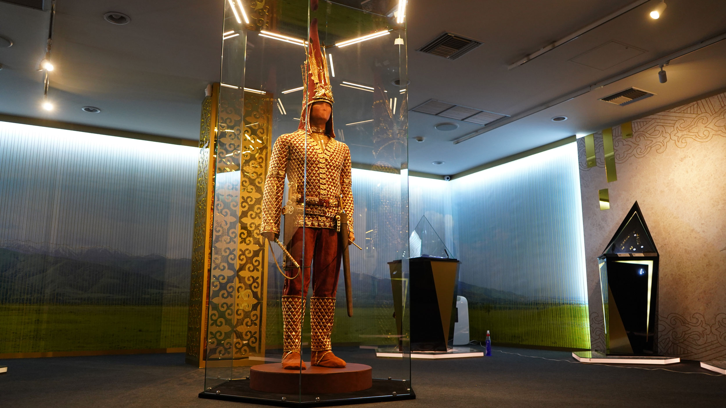 Τα περισσότερα εκθέματα είναι κατασκευασμένα σύμφωνα με τον «Ζωικό Ρυθμό» -παριστάνουν διάφορα ζώα, συχνά φιλοτεχνημένα σε χρυσό-, κληροδότημα των πρώτων κρατών της στέπας κατά την Πρώιμη Εποχή του Σιδήρου. Στη δημιουργία μιας ξεχωριστής μουσειακής εμπειρίας συμβάλλει -μαζί με τα μοναδικά εκθέματα- και ένα ακριβές αντίγραφο παραδοσιακής σκηνής των νομάδων της Στέπας, που δίνει πολύτιμες πληροφορίες για τον τόπο όπου εξημερώθηκε για πρώτη φορά το άγριο άλογο, ενώ αξιοποιήθηκαν μεταλλευτικά κοιτάσματα, δημιουργώντας κέντρα μεταλλουργίας.