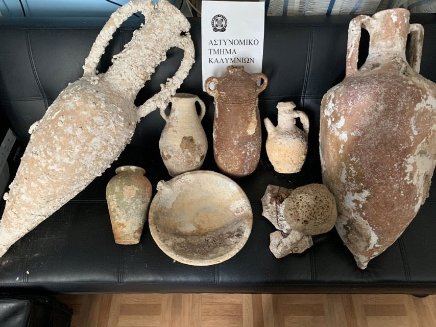 Ένας άνδρας ηλικίας 37 ετών και μια γυναίκα ηλικίας 38 ετών συνελήφθησαν την Τετάρτη 27 Νοεμβρίου 2019 στην Κάλυμνο, από αστυνομικούς του Αστυνομικού Τμήματος Καλυμνίων, κατηγορούμενοι για παράνομη κατοχή αρχαιοτήτων.