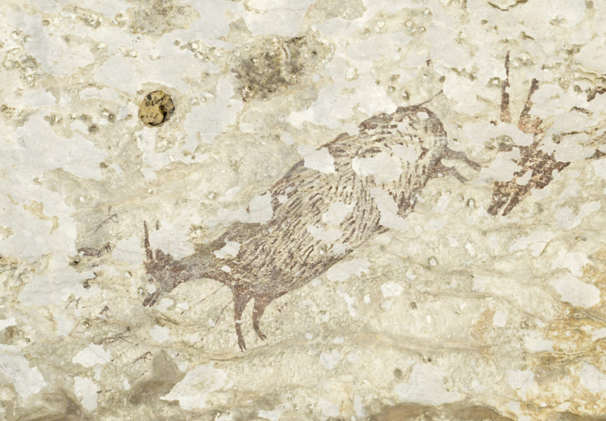 Αυστραλοί και Ινδονήσιοι επιστήμονες εντόπισαν σε ασβεστολιθικό σπήλαιο στη νήσο Σουλαβέζι της Ινδονησίας βραχογραφίες που απεικονίζουν οκτώ μικρές ανθρώπινες μορφές –μερικές από τις οποίες έχουν και χαρακτηριστικά ζώου– να κυνηγούν με δόρατα ή μακριά σκοινιά δύο αγριόχοιρους και τέσσερις μικρούς βούβαλους. Πρόκειται για την αρχαιότερη στον κόσμο σκηνή κυνηγιού, ηλικίας τουλάχιστον 43.900 ετών.