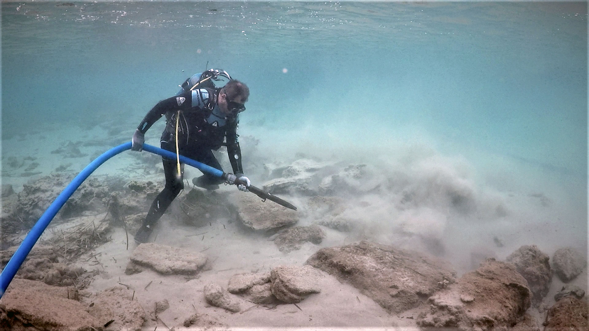 Οι μαρτυρίες της επιφάνειας του βυθού και της ακτής συμπληρώνονται αντίστοιχα με τη διερεύνηση του υποπυθμένα της περιοχής με μεθόδους γεωφυσικής διασκόπησης (μαγνητική και ηλεκτρική τομογραφία), η οποία δείχνει την ύπαρξη δομών σε βάθος μέχρι -1,5 μ. κάτω από τη στάθμη του βυθού.