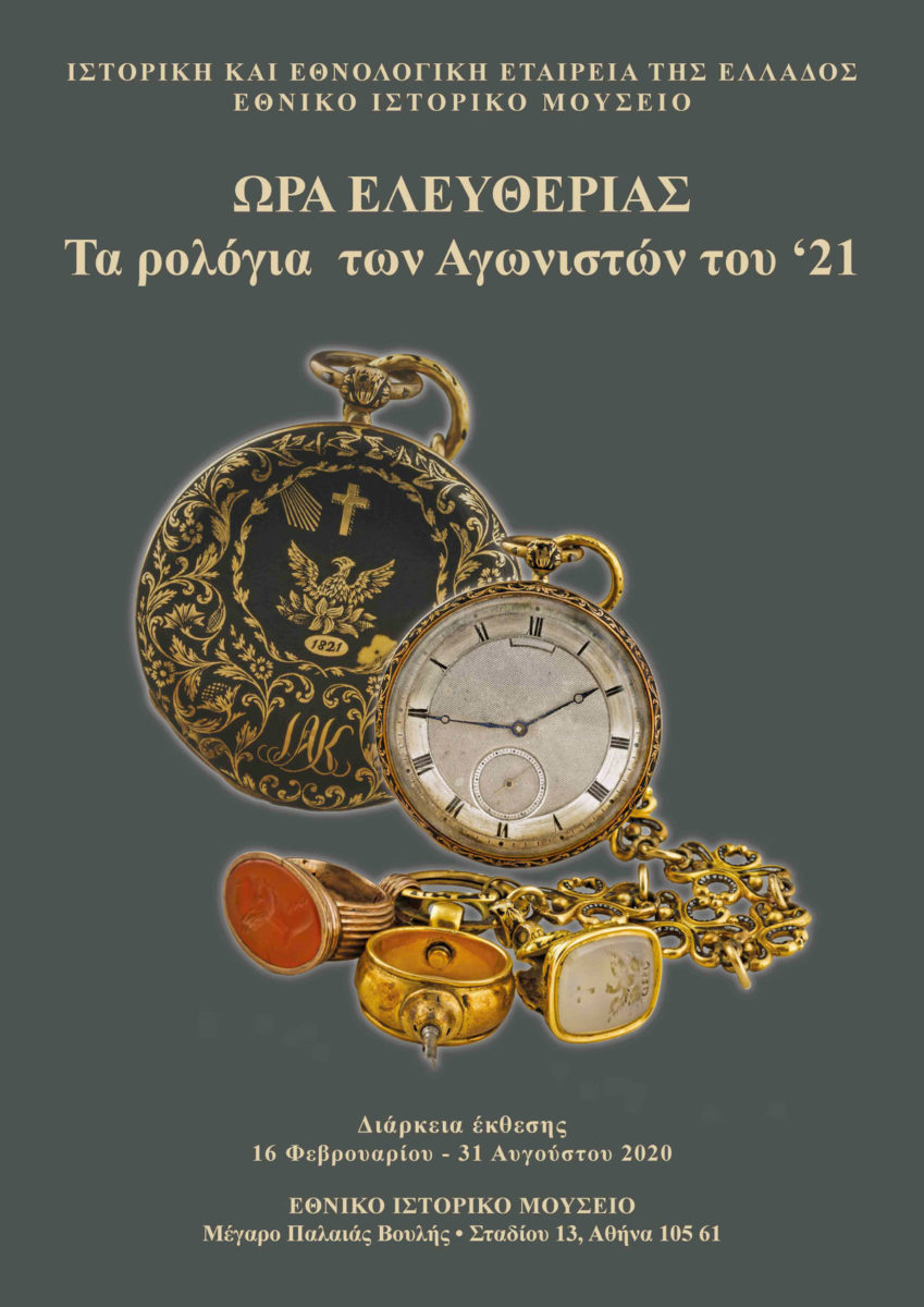 «Ώρα ελευθερίας. Τα ρολόγια των Αγωνιστών του ’21» είναι ο τίτλος περιοδικής έκθεσης που παρουσιάζει το Εθνικό Ιστορικό Μουσείο. Τα ρολόγια τσέπης που παρουσιάζονται σε αυτή την έκθεση μάς ταξιδεύουν στο χρόνο κυριολεκτικά και μεταφορικά. Φορεμένα από τους ίδιους πριν, κατά και μετά τον Αγώνα της Ανεξαρτησίας, μέτρησαν λεπτό προς λεπτό τις καθημερινές αγωνίες και τους κινδύνους που έζησαν κατά τη διάρκειά του και σήμαναν την ώρα της ελευθερίας και συγχρόνως την ώρα της ευθύνης για τη δημιουργία του νέου ελληνικού κράτους.