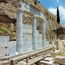 Ο πρόεδρος του Μουσείου Ακρόπολης μας παρουσιάζει και τη μοναδική στήλη, στην οποία καταγράφεται η άφιξη της λατρείας του Ασκληπιού στην Αθήνα, αλλά και η ίδρυση του ιερού του στην Ακρόπολη, από τον Τηλέμαχο τον Αχαρνέα. Στο επάνω μέρος της στήλης και γύρω γύρω από αυτήν υπάρχουν ανάγλυφες σκηνές με το ίδιο θέμα.