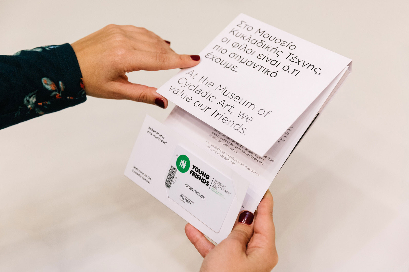 »Σήμερα, κύριο μέλημά μας είναι και πάλι η Παιδεία και η μουσειακή εμπειρία. Εν μέσω της πρωτοφανούς αυτής υγειονομικής κρίσης, επιλέξαμε να δωρίσουμε το 20% από κάθε νέα συνδρομή ή ανανέωση των Φίλων μας για την αγορά tablets, στηρίζοντας το πρόγραμμα του Υπουργείου Παιδείας και Θρησκευμάτων. Δεν είναι παρά ένα μικρό ευχαριστώ για τα τόσα χαμόγελα που γεμίζουν το μουσείο μας τόσα χρόνια. Κάθε πράξη προσφοράς είναι μία πράξη πολιτισμού και ο πολιτισμός είναι ένα ανοιχτό παράθυρο ελπίδας για τον καθένα μας. Το Μουσείο Κυκλαδικής Τέχνης θα παραμείνει ανοιχτό με κάθε δυνατό τρόπο όσο υπάρχουν εκείνοι που το στηρίζουν και γι’ αυτό ευχαριστούμε τον καθένα από καρδιάς».
