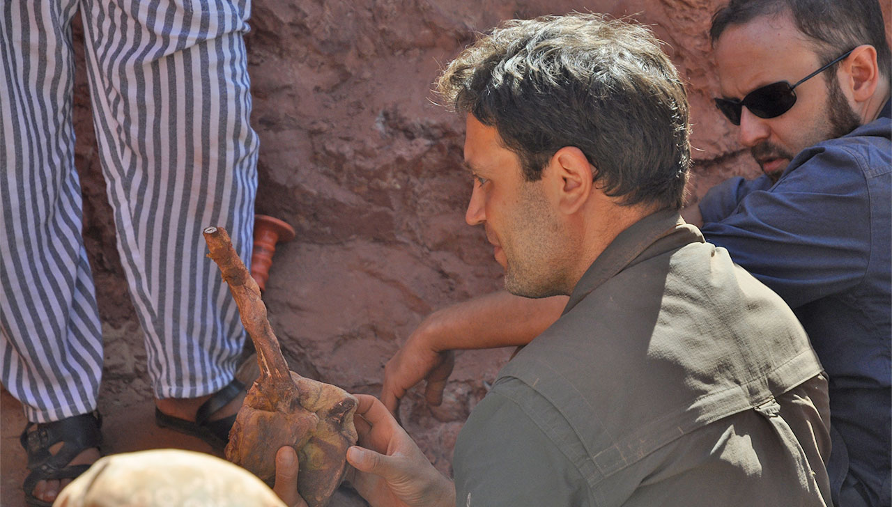 Οι ερευνητές, με επικεφαλής τον καθηγητή Παλαιοντολογίας Νιζάρ Ιμπραχίμ του Πανεπιστημίου του Ντιτρόιτ Μέρσι, που έκαναν τη σχετική δημοσίευση στο περιοδικό «Nature», βρήκαν στο νοτιοανατολικό Μαρόκο απολιθώματα οστών της μακριάς ουράς του Σπινόσαυρου, που του επέτρεπαν να κολυμπάει και να κυνηγάει μέσα στο νερό, περίπου όπως οι κροκόδειλοι.