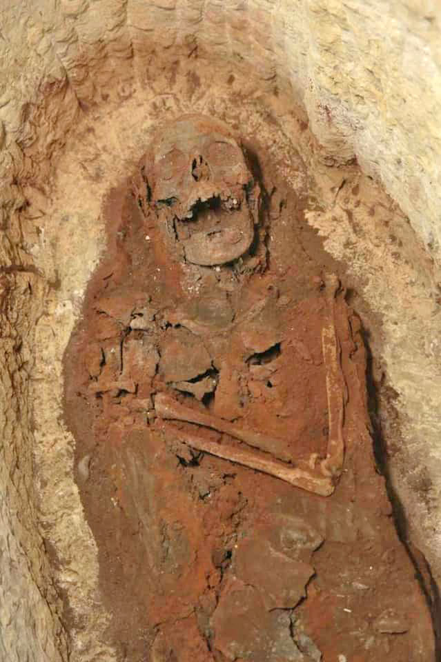 Ο νέος ταφικός θάλαμος περιείχε τέσσερις ξύλινες σαρκοφάγους που σώζονται σε κακή κατάσταση. Σύμφωνα με τον δρα Ραμαντάν Μπάντρι Χουσεΐν, διευθυντή της αποστολής του Πανεπιστημίου του Tübingen στη Σακκάρα, μία από τις σαρκοφάγους ανήκει σε μια γυναίκα που ονομάζεται Ντίντι-Μπαστέτ. Η γυναίκα είχε ταφεί με έξι κανωπικά αγγεία, κάτι που αποτελεί παράδοξο καθώς το τυπικό αρχαίο αιγυπτιακό έθιμο προέβλεπε τη χρήση τεσσάρων κανωπικών αγγείων για την αποθήκευση των ταριχευμένων πνευμόνων, του στομάχου, των εντέρων και του ήπατος του νεκρού. Η αποστολή εξέτασε το περιεχόμενο των δύο επιπλέον κανωπικών αγγείων της Ντίντι-Μπαστέτ με ψηφιακή σάρωση (CT) και η προκαταρκτική ανάλυση των εικόνων δείχνει ότι τα δύο αγγεία περιέχουν ανθρώπινο ιστό. Με βάση το εύρημα αυτό, η Ντίντι-Μπαστέτ είχε πιθανότατα υποστεί μια ειδική μορφή ταρίχευσης όπου έξι όργανα του σώματος αφαιρέθηκαν και διατηρήθηκαν. Στην παρούσα φάση, ο ακτινολόγος της αποστολής εξετάζει τις εικόνες ωστε να ταυτίσει τα δύο επιπλέον όργανα.