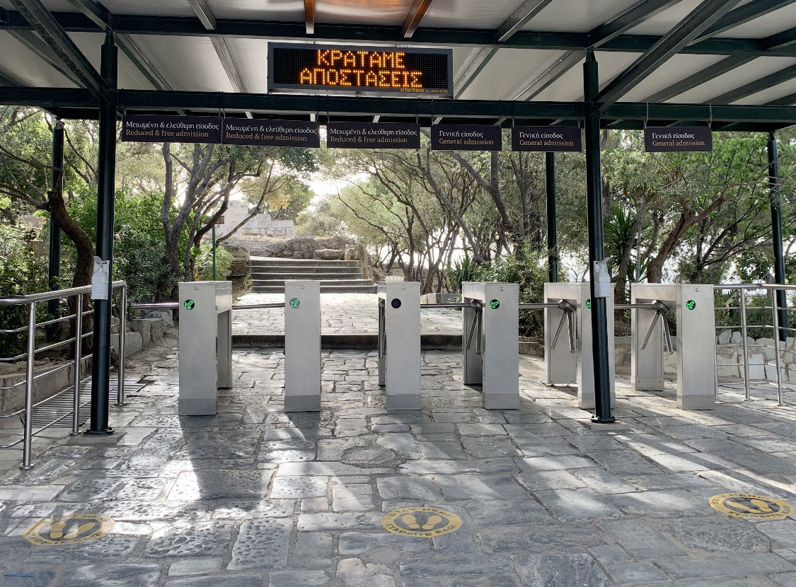 »Εφαρμόζονται ειδικά πρωτόκολλα ασφαλούς χρήσης, προσαρμοσμένα στις ιδιαιτερότητες κάθε χώρου. Προβλέπεται η ακριβής μέριμνα για την απολύμανση των χώρων και για την προμήθεια απολυμαντικών ειδών. Επίσης, έχουν τοποθετηθεί διαχωριστικά πετάσματα, όπου είναι απαραίτητο, όπως για παράδειγμα στα Προπύλαια της Ακρόπολης, στο σημείο που συμπίπτει άνοδος και κάθοδος. Τα πρωτόκολλα που θα εφαρμοστούν ορίζουν όχι μόνο τον μέγιστο αριθμό επισκεπτών, αλλά και τις ασφαλείς διαδρομές περιήγησης και θέασης, όπως εισόδου και εξόδου, όπου είναι εφικτό».