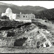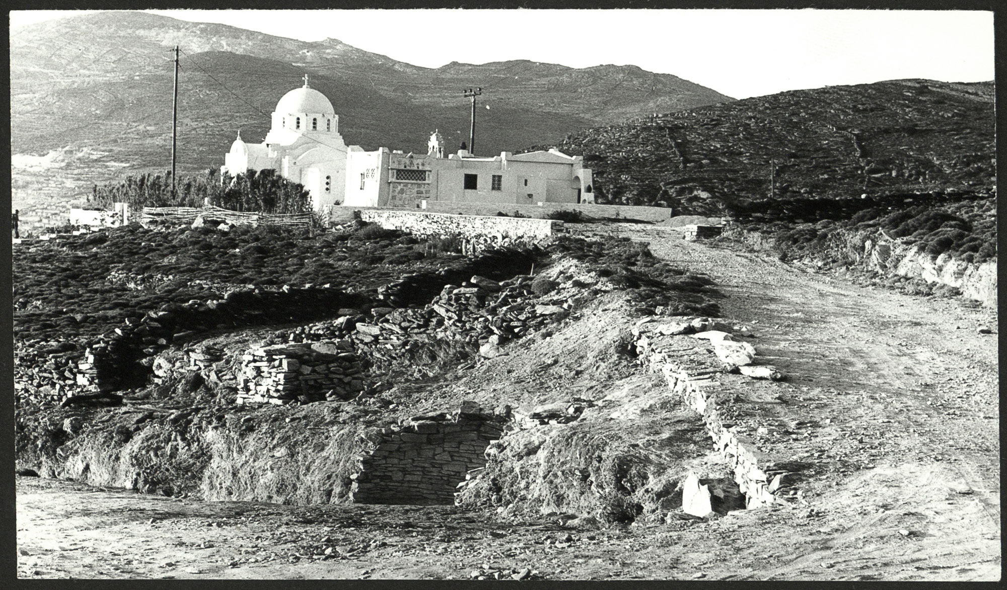 Στο επίκεντρο βρίσκονται τα ευρήματα του σπάνιου για ολόκληρο το Αιγαίο μυκηναϊκού θολωτού τάφου στην Αγία Θέκλα, στη βόρεια Τήνο. Το μικρών διαστάσεων μνημείο, το οποίο υπήρξε και η αφορμή για τη δημιουργία της έκθεσης, αποκαλύφθηκε κατά τις εργασίες διάνοιξης δρόμου και τα υπολείμματά του ερευνήθηκαν από τον αείμνηστο Τηνιακό αρχαιολόγο Γεώργιο Δεσπίνη, το 1979. Πρόκειται για έναν από τους μόλις τρεις γνωστούς θολωτούς μυκηναϊκούς τάφους στις Κυκλάδες και αποτελεί τη μοναδική, προς το παρόν, επιβεβαιωμένη μυκηναϊκή θέση στο νησί. Τόπος ταφής ενός γένους «αριστοκρατών», ο τάφος της Αγίας Θέκλας (13ος-12ος αι. π.Χ.) είχε χρησιμοποιηθεί για πολλαπλές ταφές. Τα ευρήματά του (αγγεία, κοσμήματα, χάλκινα αντικείμενα) αποτελούν πολύτιμη πηγή πληροφοριών για τις ταφικές πρακτικές, την κοινωνική οργάνωση και την τέχνη στις Κυκλάδες των τελευταίων αιώνων της 2ης χιλιετίας π.Χ.