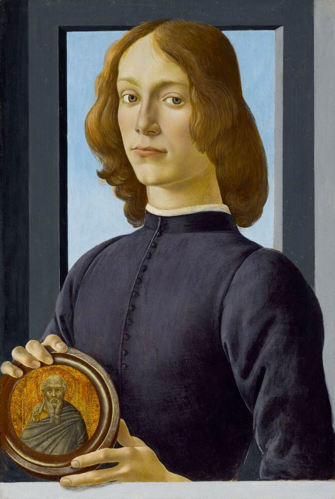 Ο πίνακας εικονίζει έναν νεαρό άνδρα με μακριά μαλλιά, που κρατά στα χέρια του μια εικόνα. Η ταυτότητα του άνδρα είναι άγνωστη, όμως οι ειδικοί πιστεύουν ότι ενδεχομένως να πρόκειται για κάποιο πρόσωπο προσκείμενο στην πανίσχυρη οικογένεια των Μεδίκων.