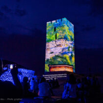 Οι εικόνες αυτές είναι μέρος μιας εντυπωσιακής τρισδιάστατης εγκατάστασης που λειτουργεί ως ένα είδος ντοκιμαντέρ, προβάλλοντας στον πύργο, με κινηματογραφικό τρόπο, κινούμενες εικόνες και βίντεο που δημιουργήθηκαν με τη βοήθεια ειδικού λογισμικού και ενός μοντέλου που σχεδιάστηκε στον υπολογιστή με βάση την εικονική σκηνογραφία του μνημείου.