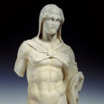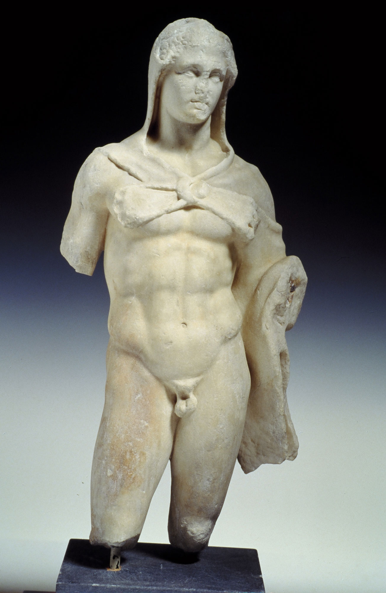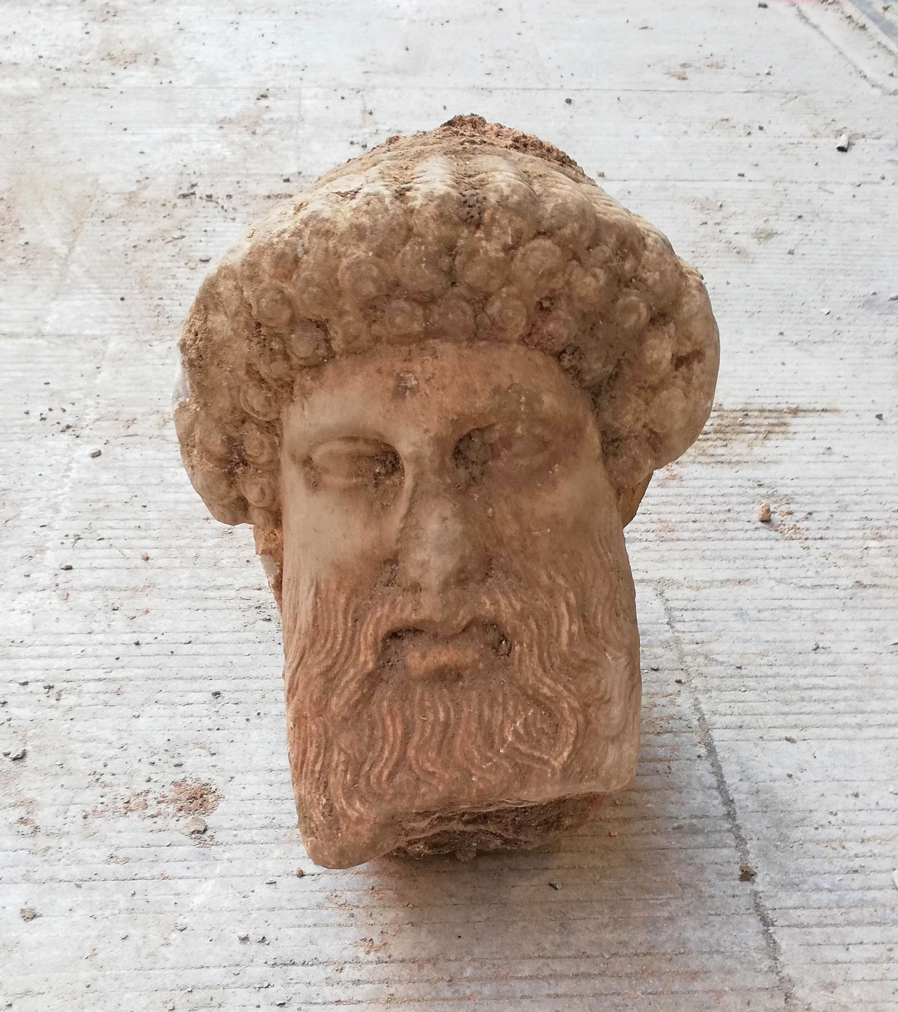Απέναντι από το σημείο που βρέθηκε η κεφαλή του Ερμή, κοντά στον Ι.Ν. της Αγίας Ειρήνης, ανασύρθηκε το 1885 από τα χώματα ένα μοναδικό εύρημα, εκπληκτικής τέχνης και ομορφιάς: Το άγαλμα γυμνού νεαρού Ηρακλή (εικ. 1), με τη λεοντή να πέφτει από το κεφάλι καλύπτοντας μόνο τον αριστερό ώμο και με τα πόδια της δοράς του ζώου να διασταυρώνονται στο ρωμαλέο στήθος του ημίθεου.